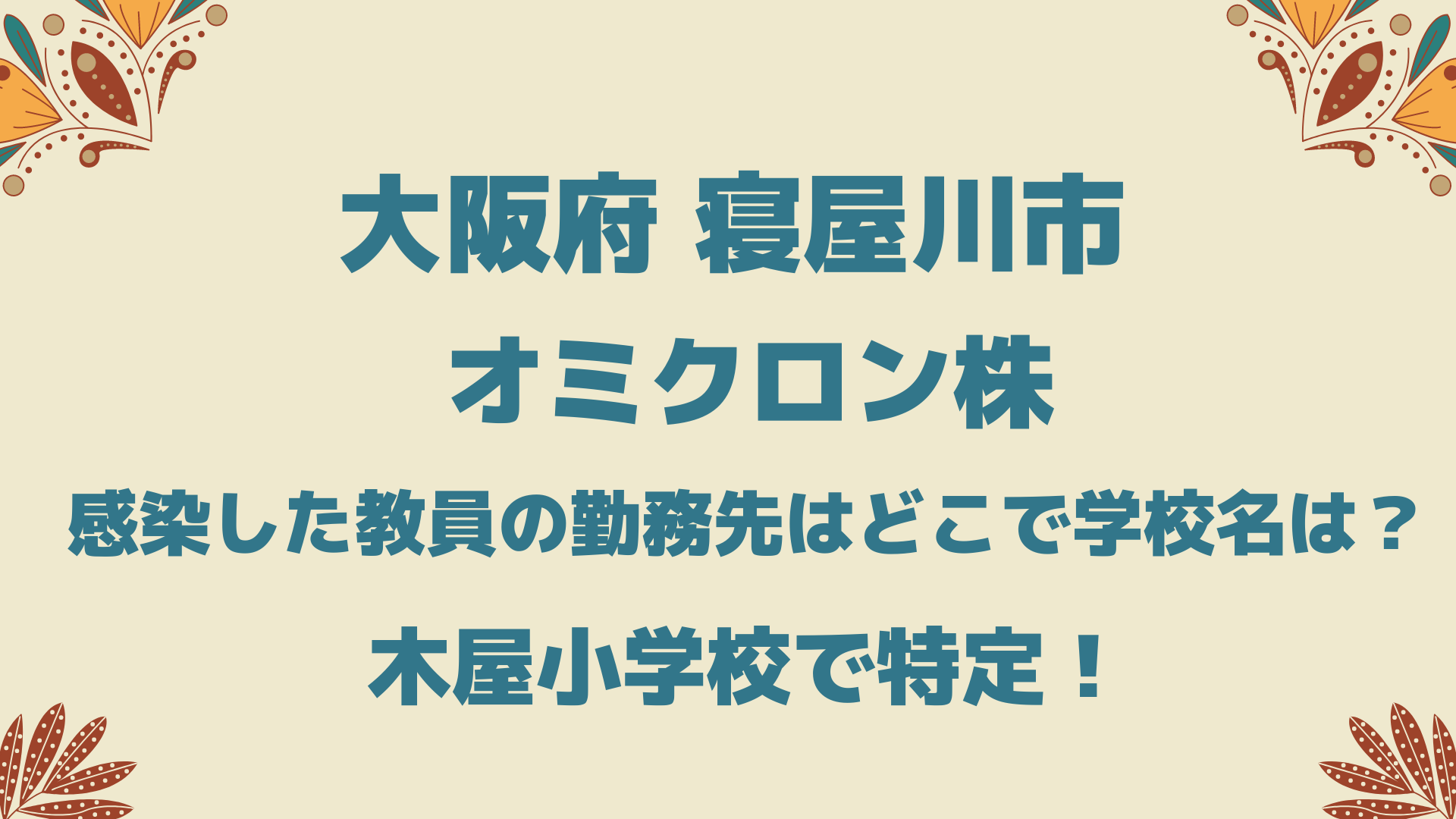 大阪府寝屋川市でオミクロン株に感染した教員の勤務先は“木屋小学校”と判明しています。