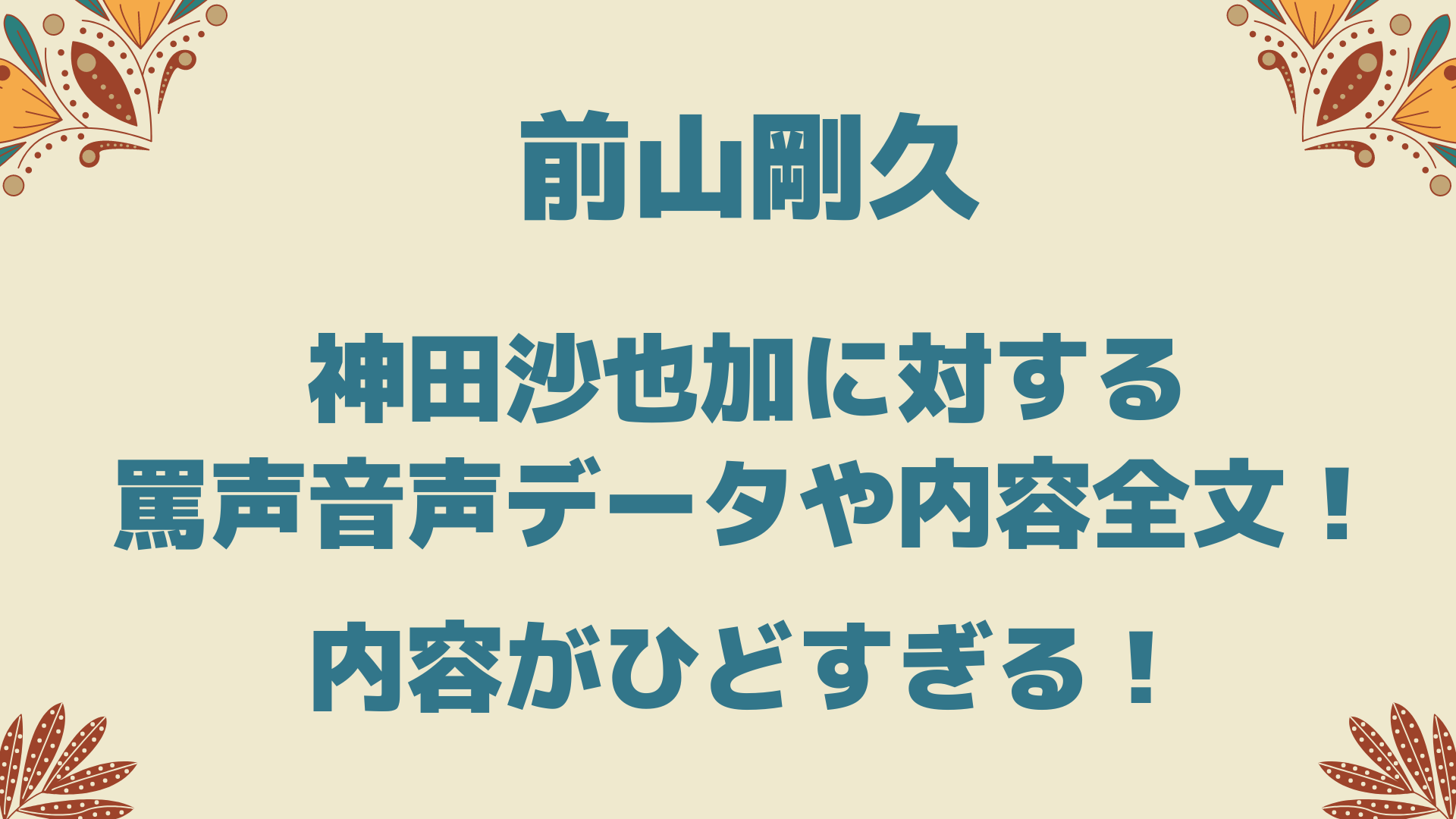 今回は、前山剛久さんが神田沙也加さんに対して言った罵倒音声の内容についてまとめました。