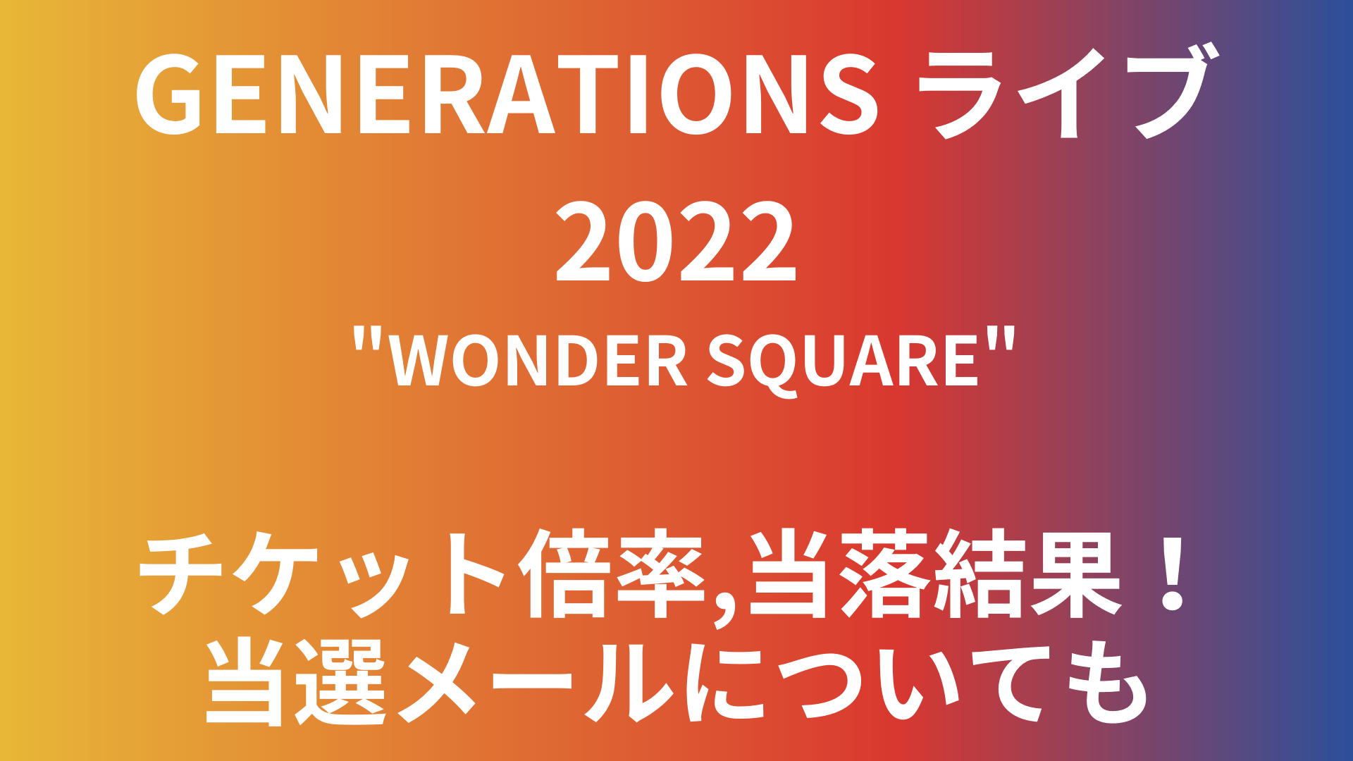 結論からお伝えすると、ジェネ(GENERATIONS)ライブ2022のチケット当選倍率は以下の通りです。