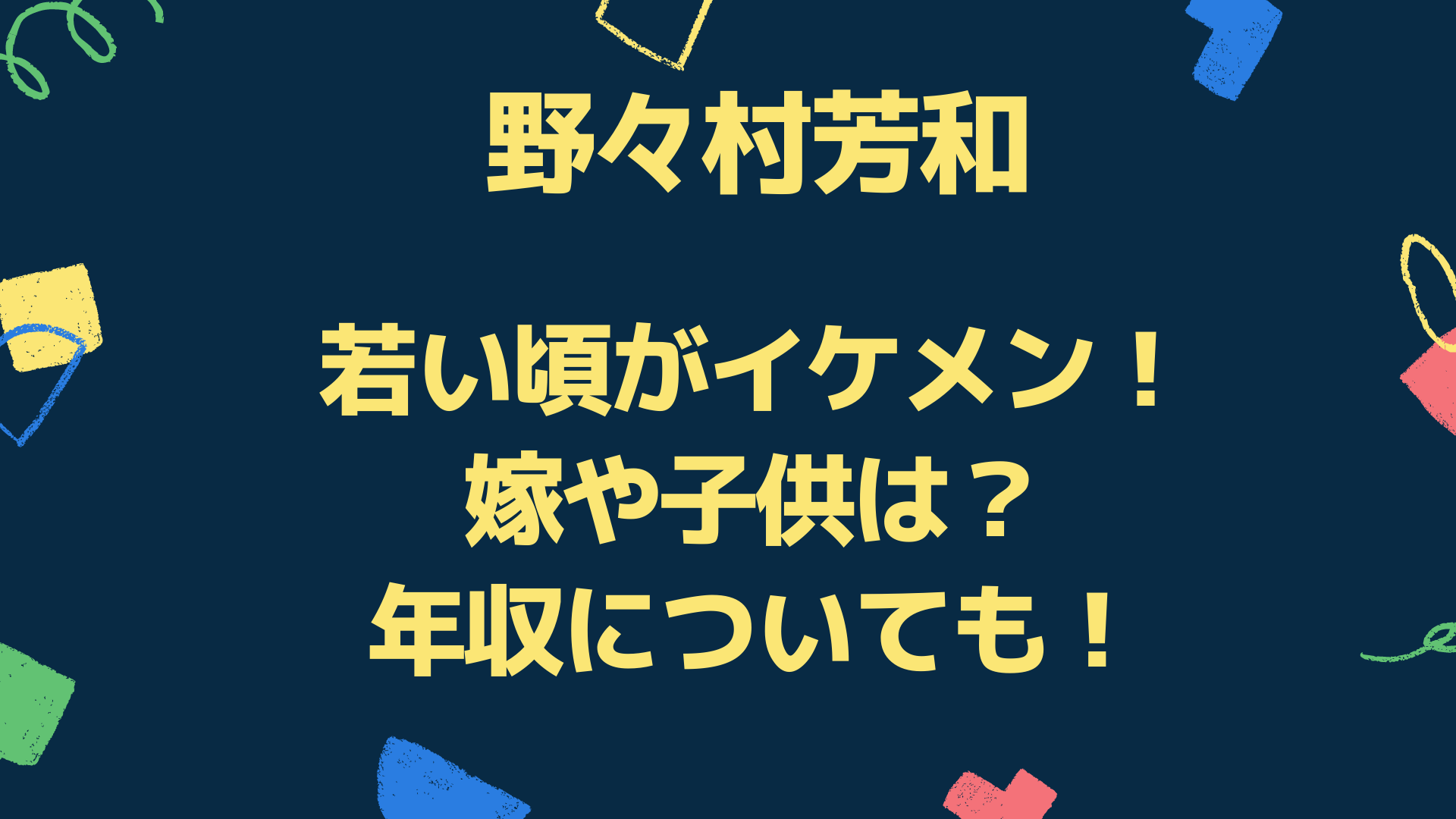 今回は「野々村芳和の若い頃がイケメン!嫁や子供は?年収についても!」と題して、以下についてまとめています。