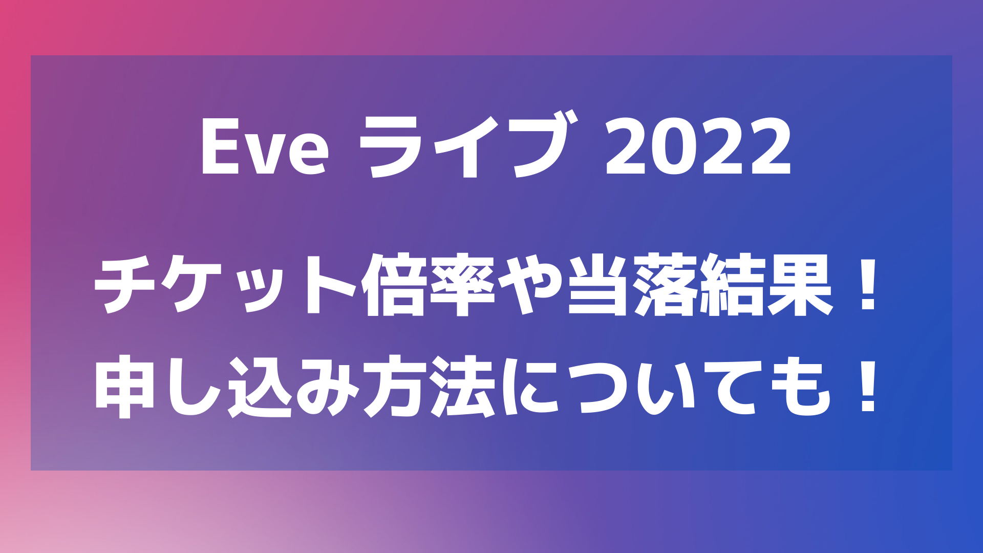 今回は「Eveライブ2022のチケット倍率や当落結果!申し込み方法についても!」と題して以下についてまとめています。