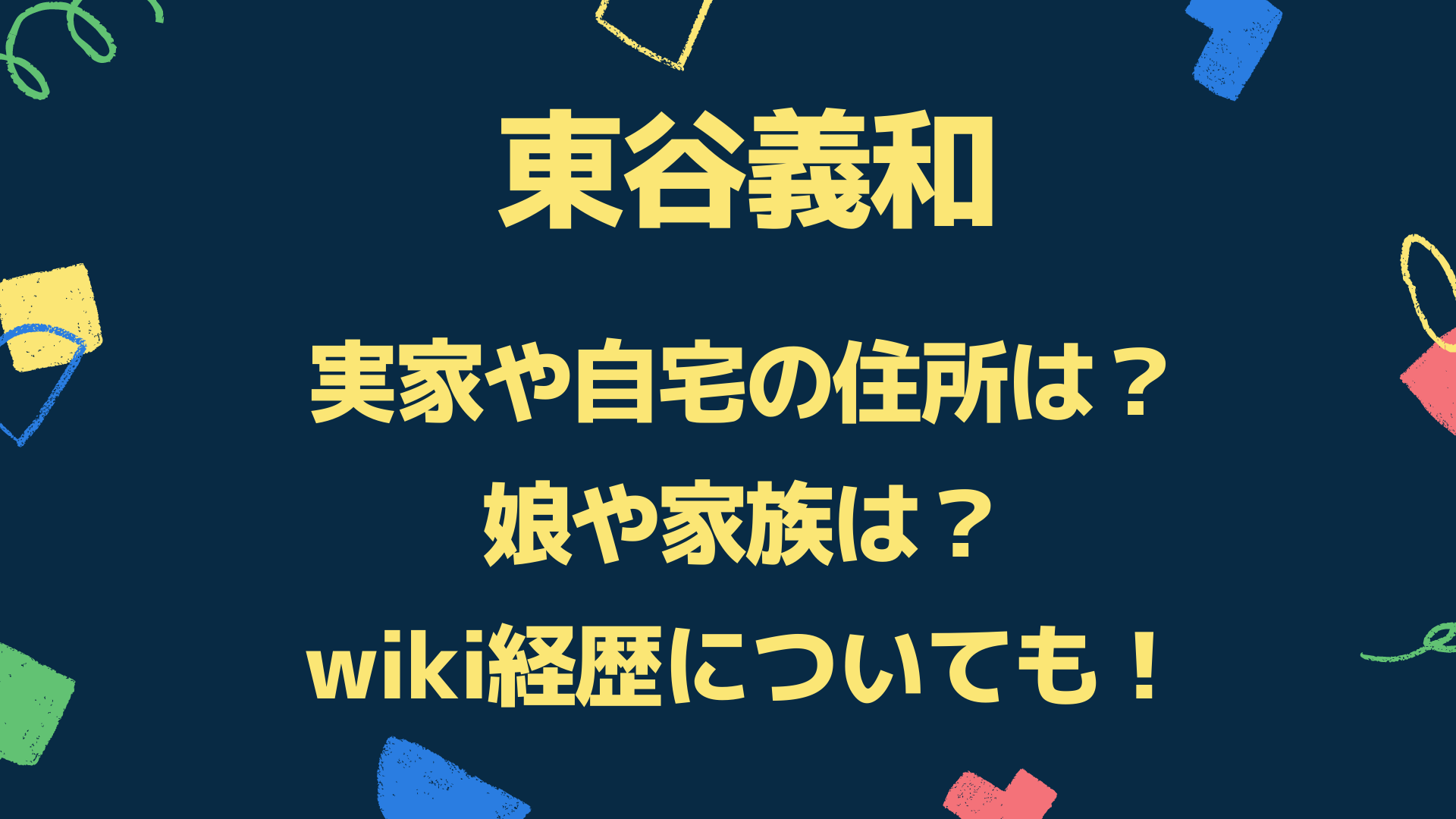 今回は「東谷義和の実家や自宅の住所は?娘や家族などwiki経歴についても!」と題して以下についてまとめています。