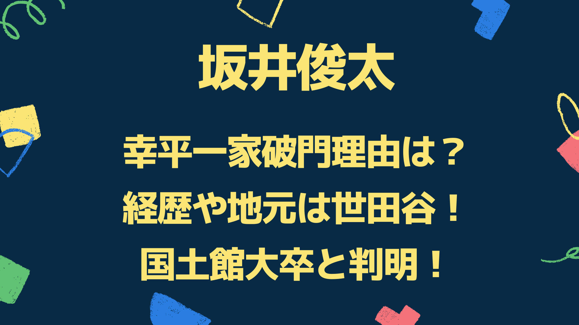 今回は「坂井俊太の幸平一家破門理由は?経歴や地元は世田谷国土館と判明!」と題して以下についてまとめています。