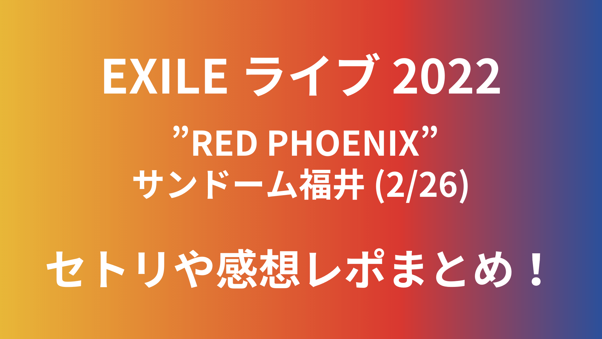 福井初日、行く人楽しみましょう⤴️#EXILE #REDPHOENIX #ライブ #福井サンドーム pic.twitter.com/VQKjKKaY4o— ERINA:) (@ldhexjsbgene) February 26, 2022