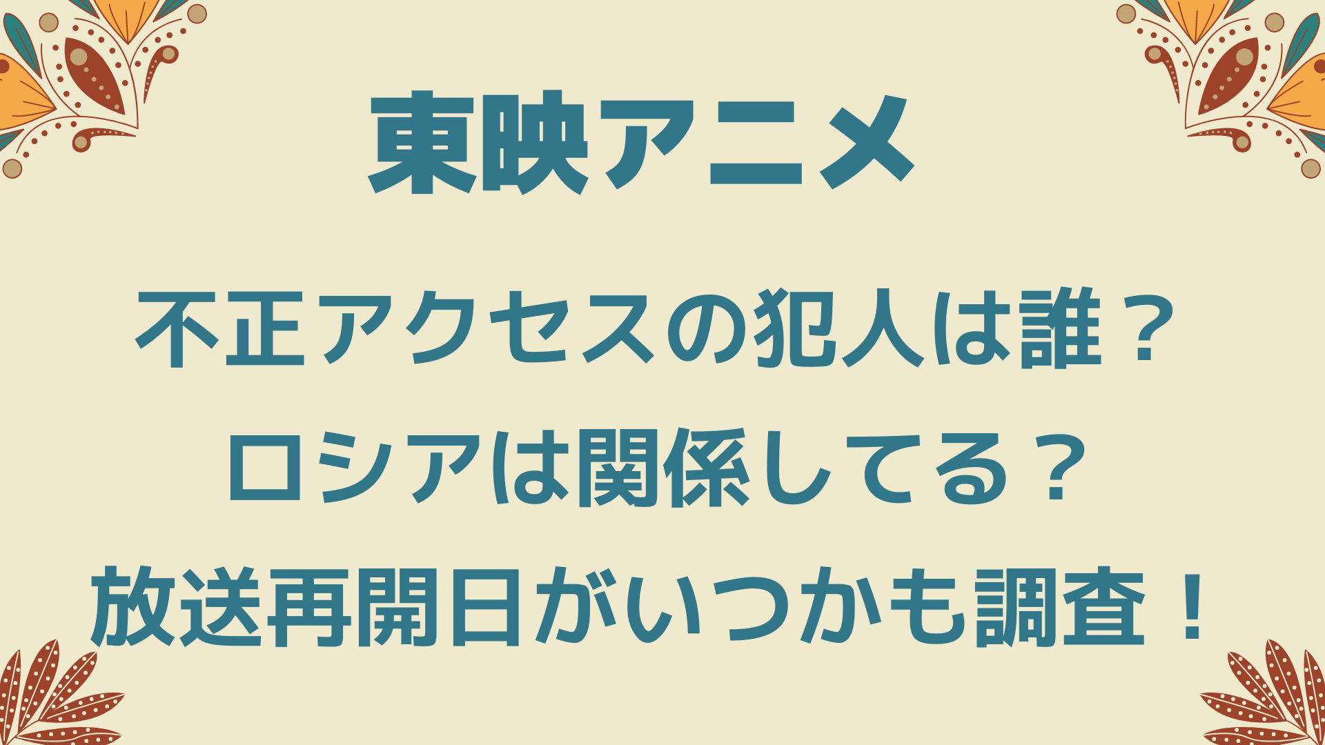 今回は「東映アニメ不正アクセスの犯人は誰?ロシアが関係?放送再開日がいつかも調査!」と題して以下についてまとめています。