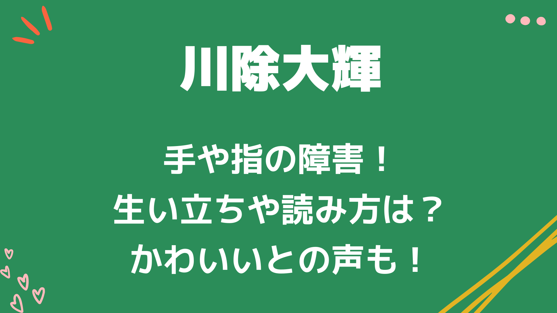 今回は「川除大輝は手や指の障害!生い立ちや読み方は?かわいいとの声も!」と題して以下についてまとめています。