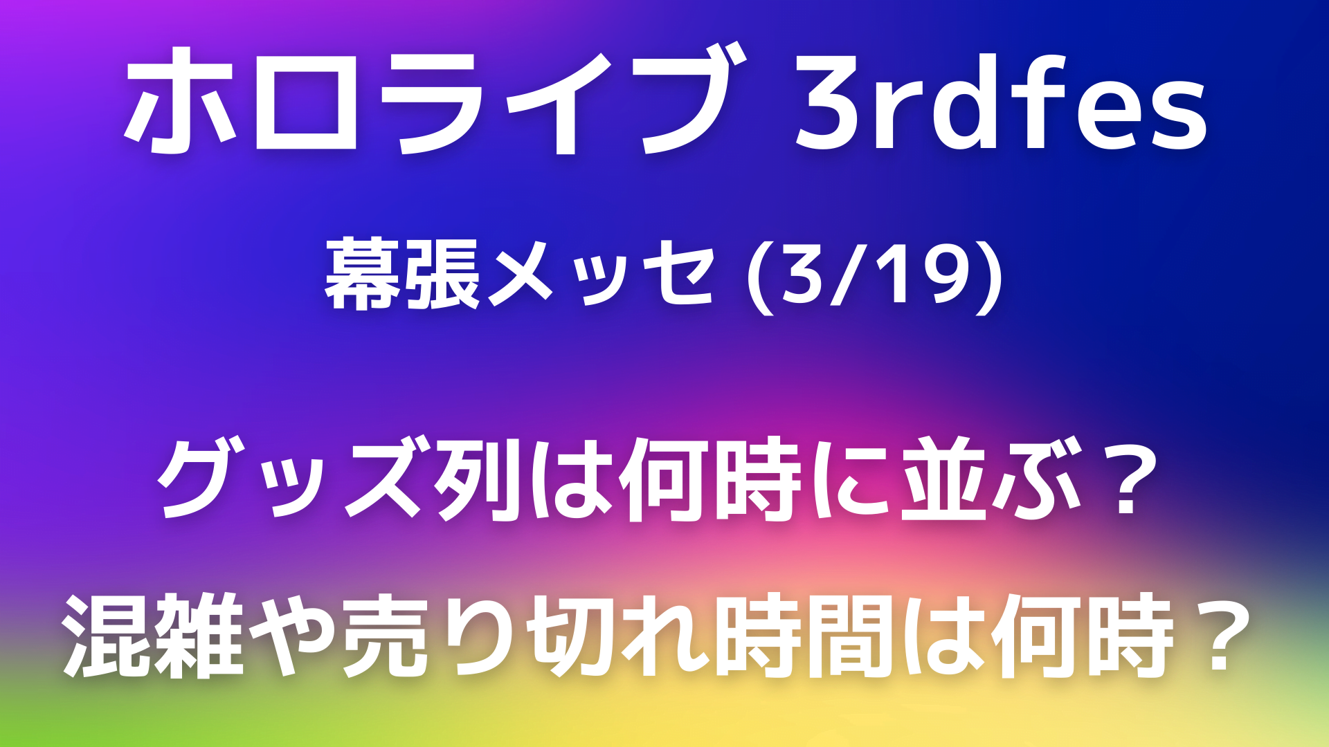 やはりホロライブ3rdfes(3/19)のグッズ物販列に何時に並んだらいいか?というツイートがたくさん上がっていました。