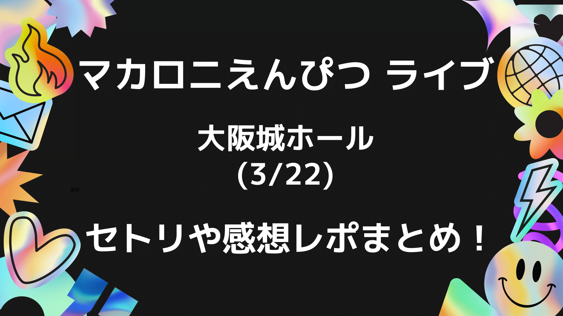 今回の記事では「マカロニえんぴつライブ(3/22)大阪のセトリネタバレ!感想レポートも!」と題して以下についてまとめています。