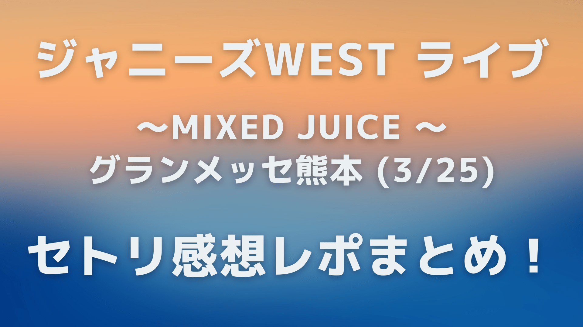 今回は「ジャニーズWESTライブ(3/26)熊本のセトリネタバレ!感想レポートも!」と題して以下についてまとめています。