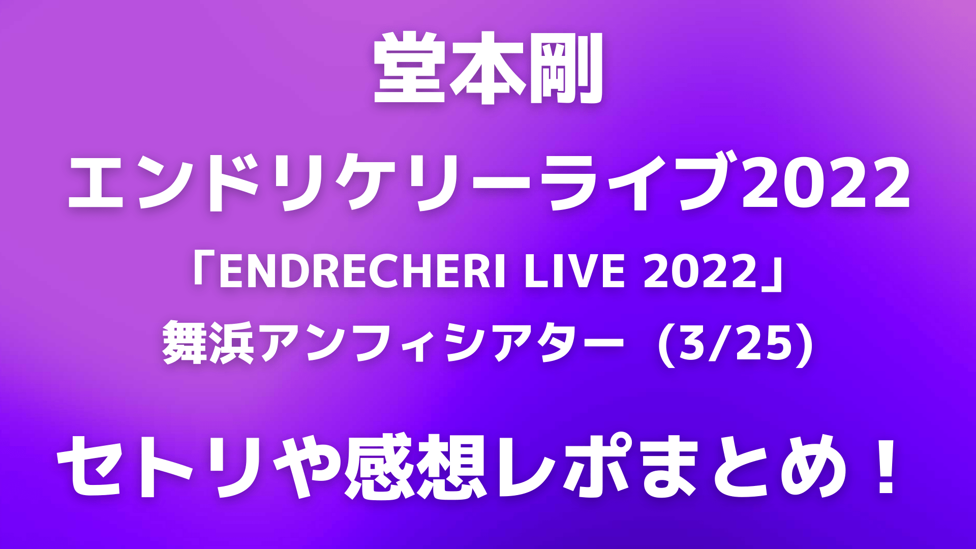 今回は「堂本剛エンドリケリーライブ2022(4/8)のセトリネタバレ!感想レポートも!」と題して以下についてまとめています。