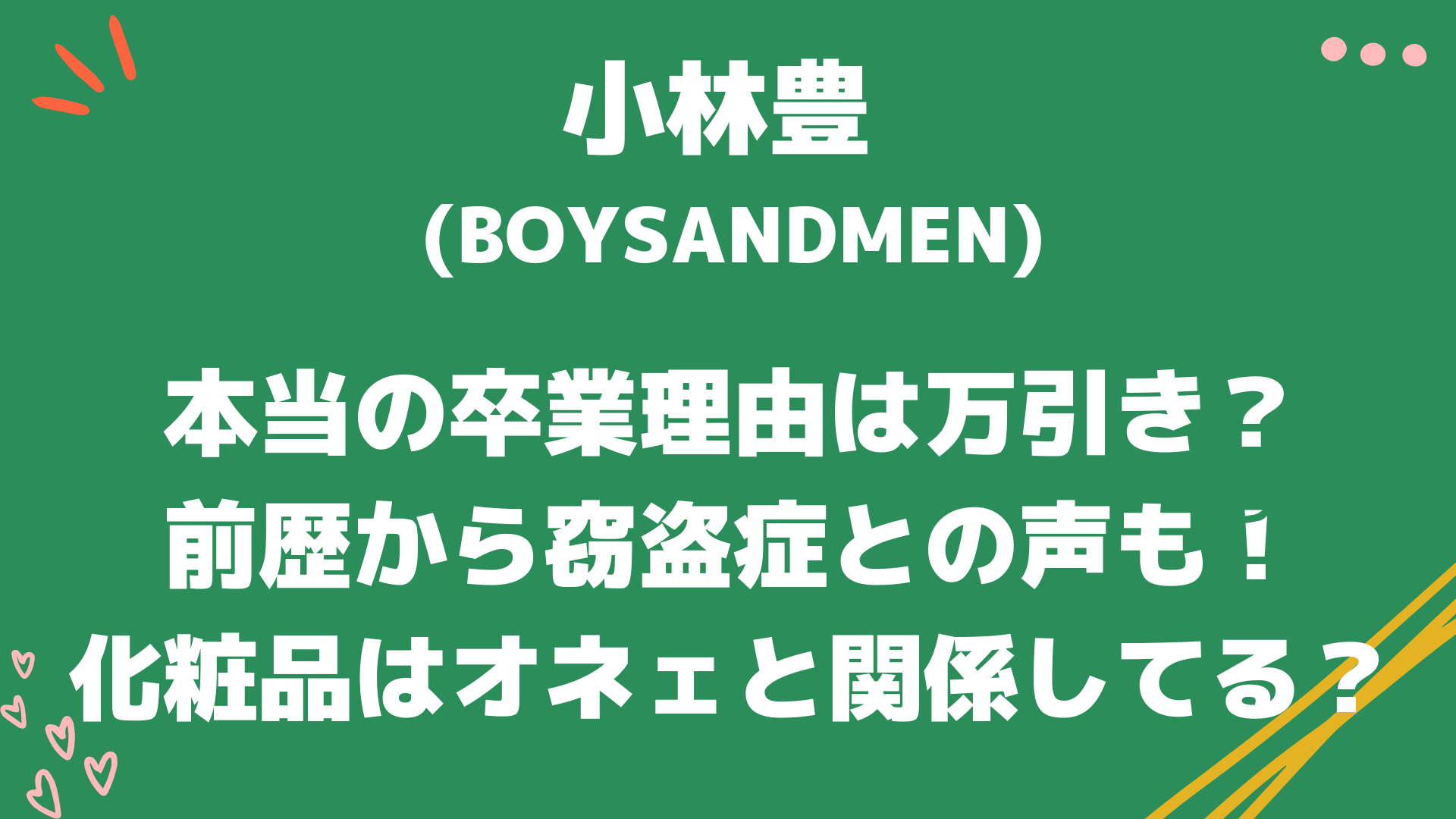今回の記事では「小林豊の本当の卒業理由は万引き?前歴もあって化粧品はオネェと関係してる?」と題して以下についてまとめています。