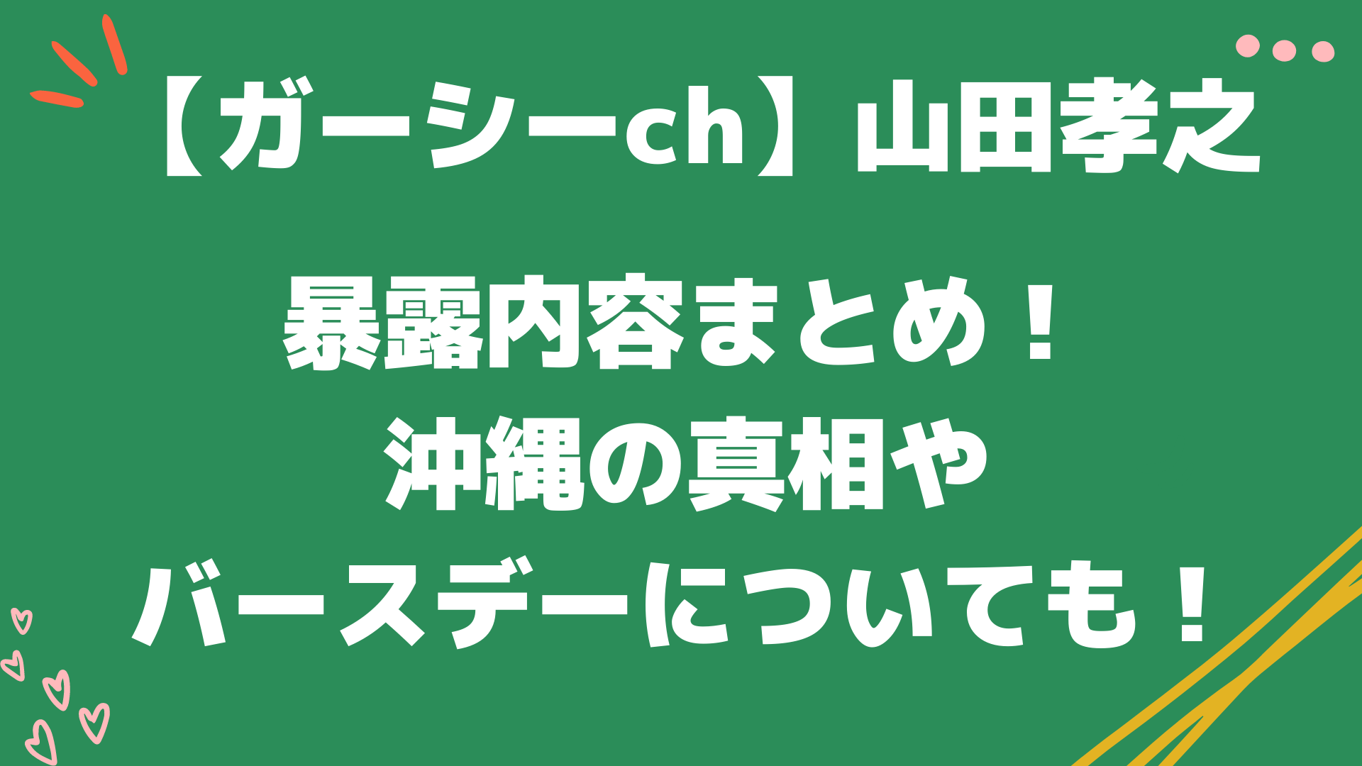 今回の記事では「【ガーシーチャンネル】山田孝之の暴露内容まとめ!沖縄の真相やバースデーについても!」と題して以下についてまとめています。