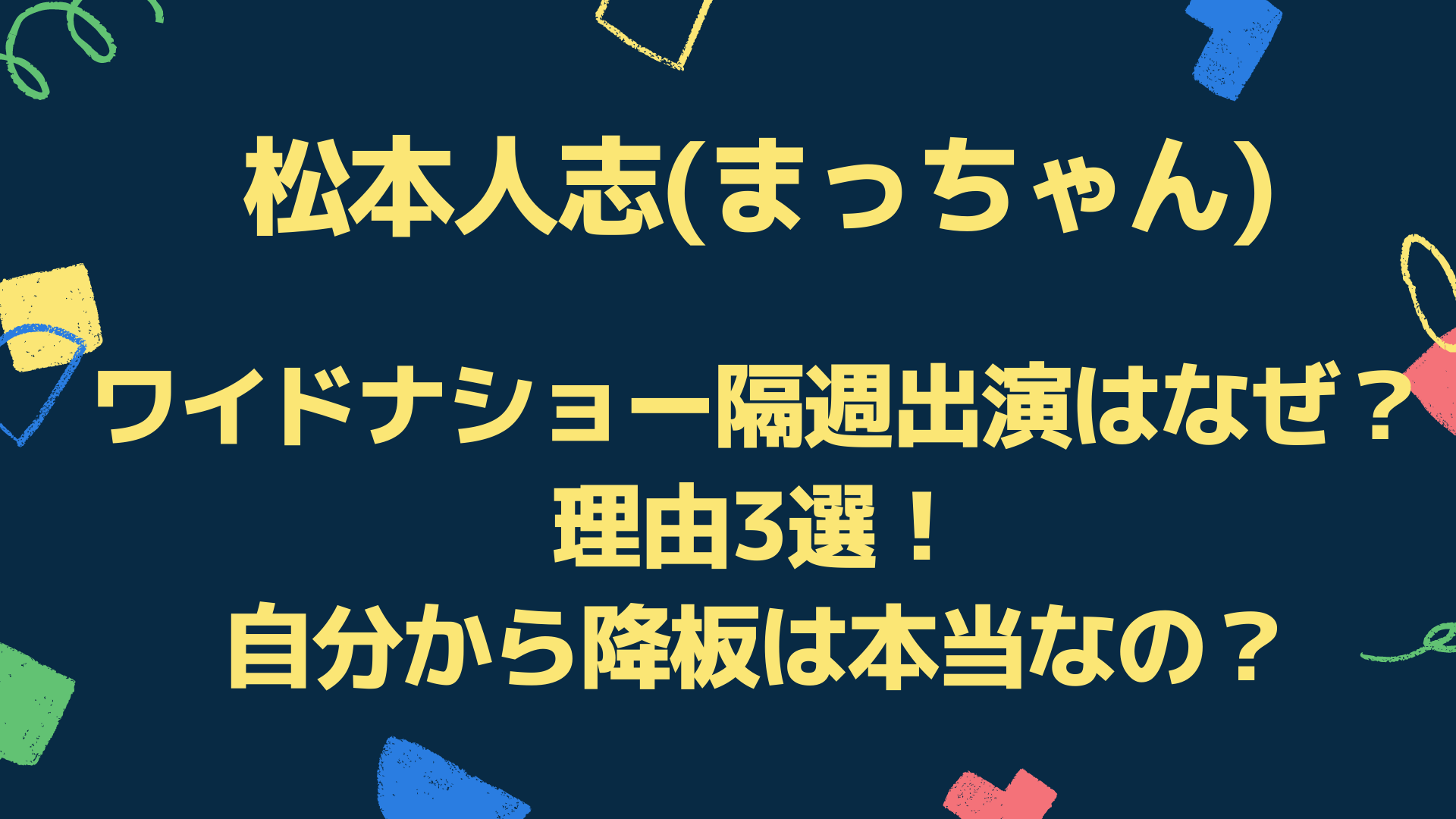 今回の記事では「松本人志(まっちゃん)ワイドナショー隔週出演はなぜ?理由3選!自分から降板した噂も!」と題して以下についてまとめています。
