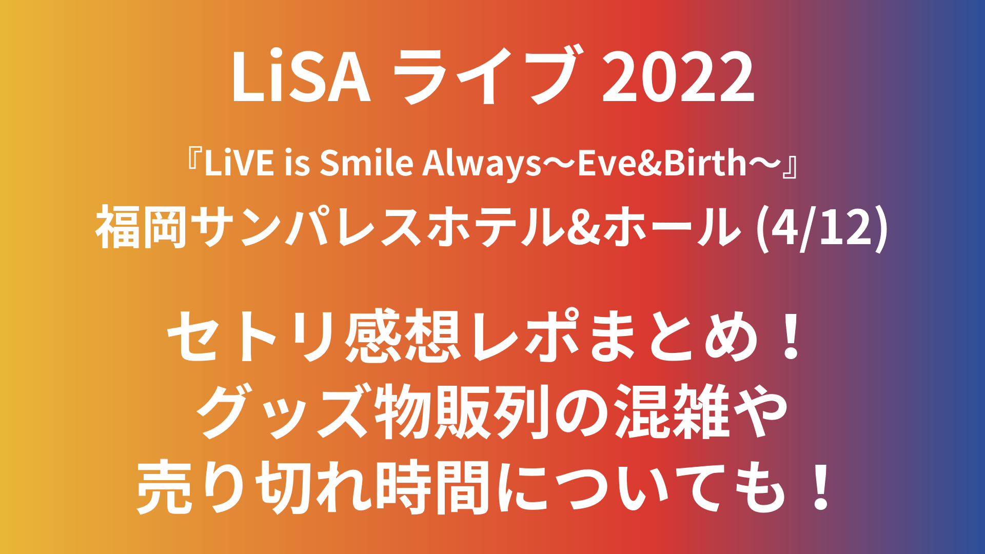 今回は「LiSAライブ2022(4/12)福岡のセトリ感想レポ!グッズ物販列の混雑や売り切れ情報についても!」と題して以下についてまとめています。