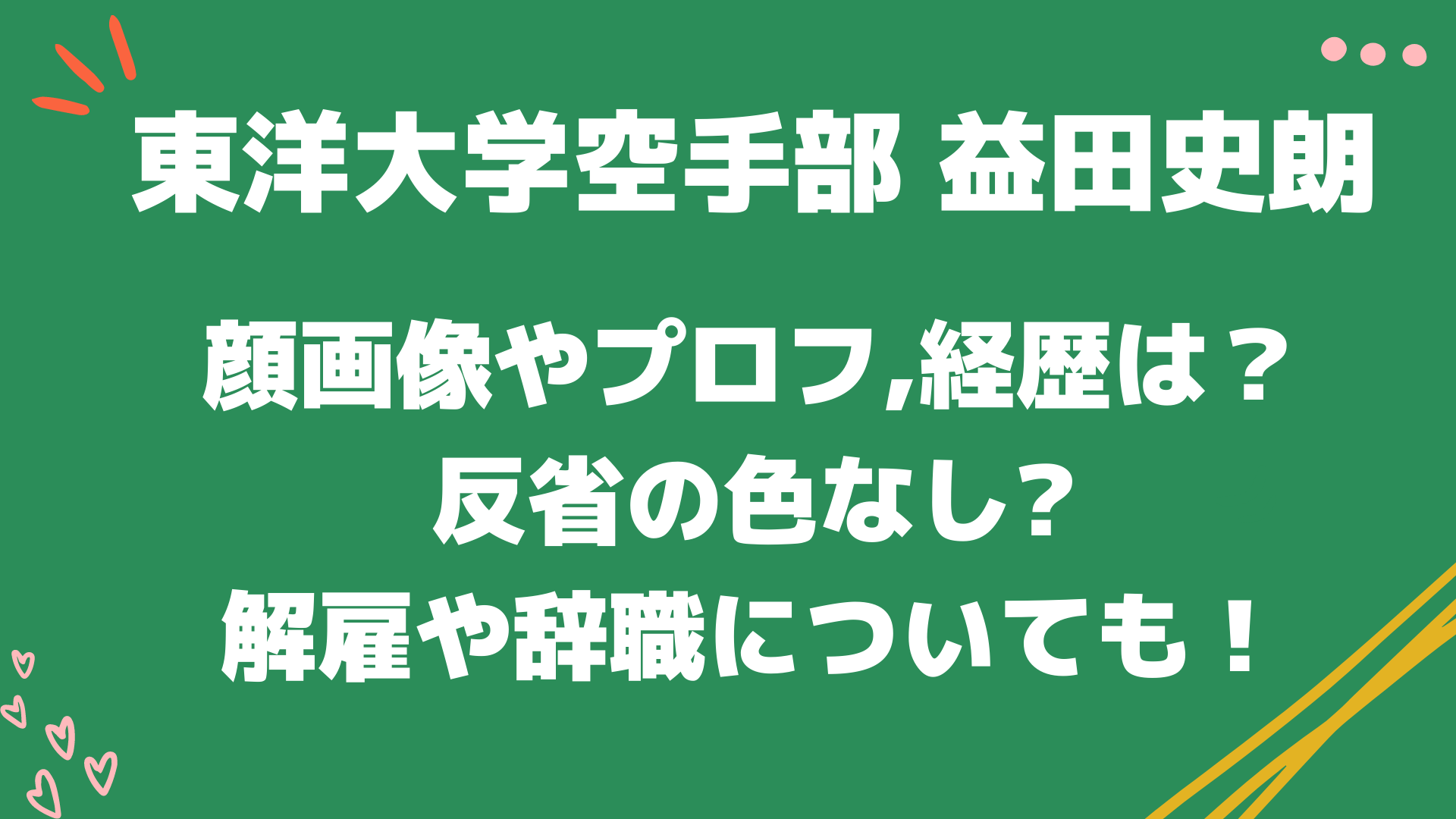 東洋大学空手部の益田史朗という空手部顧問が女子部員に対しセクハラしたことが告発されました。