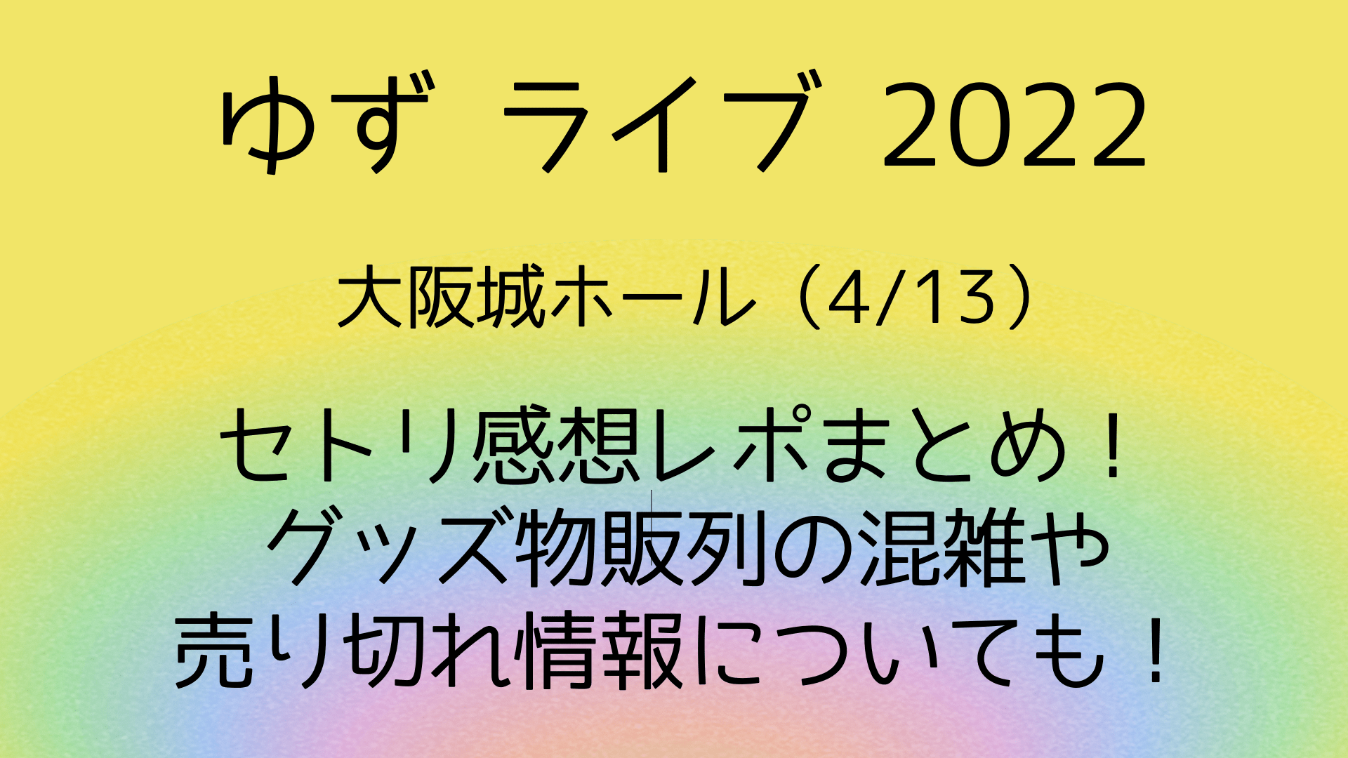 今回は「ゆずライブ2022(4/13)大阪のセトリ感想レポ!グッズ物販列の混雑や売り切れ情報についても!」と題して以下についてまとめています。