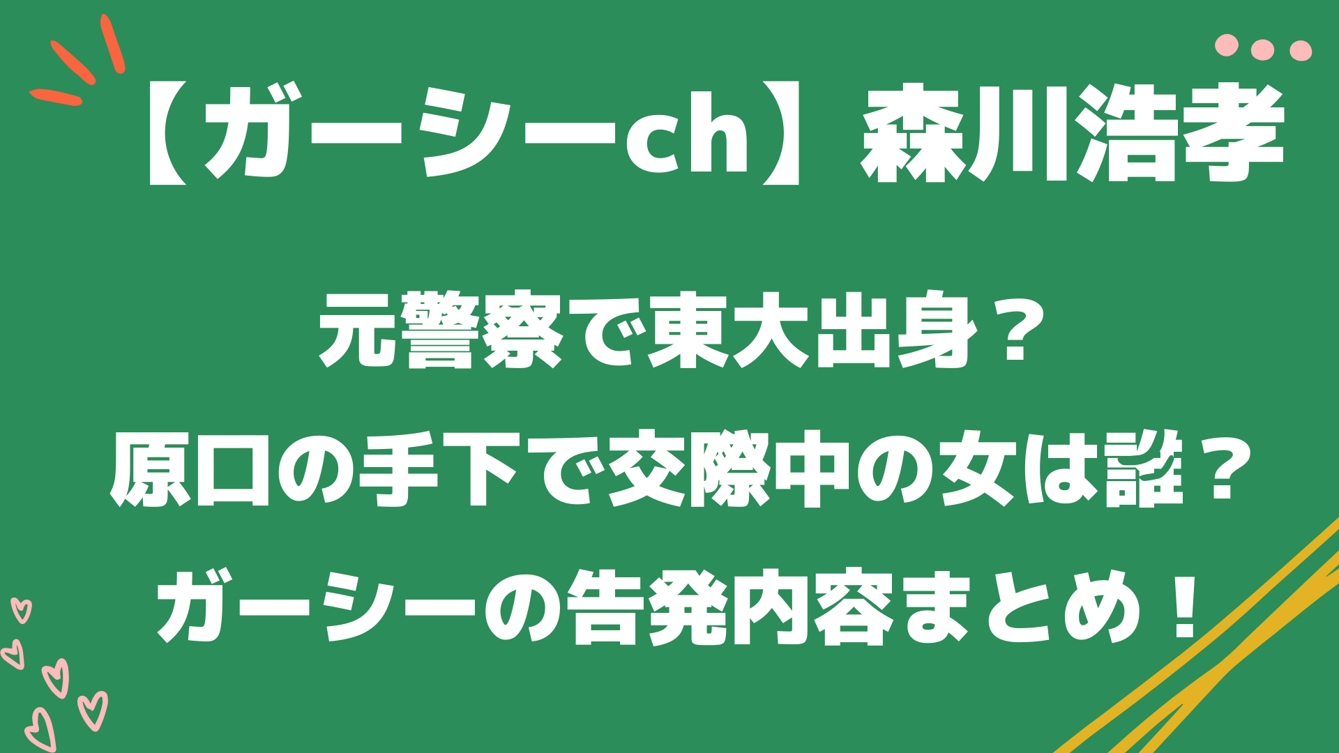 今回の記事では「森川浩孝は元警察で東大出身?原口の手下で女は誰?ガーシーの告発内容まとめ!」と題して以下についてまとめています。