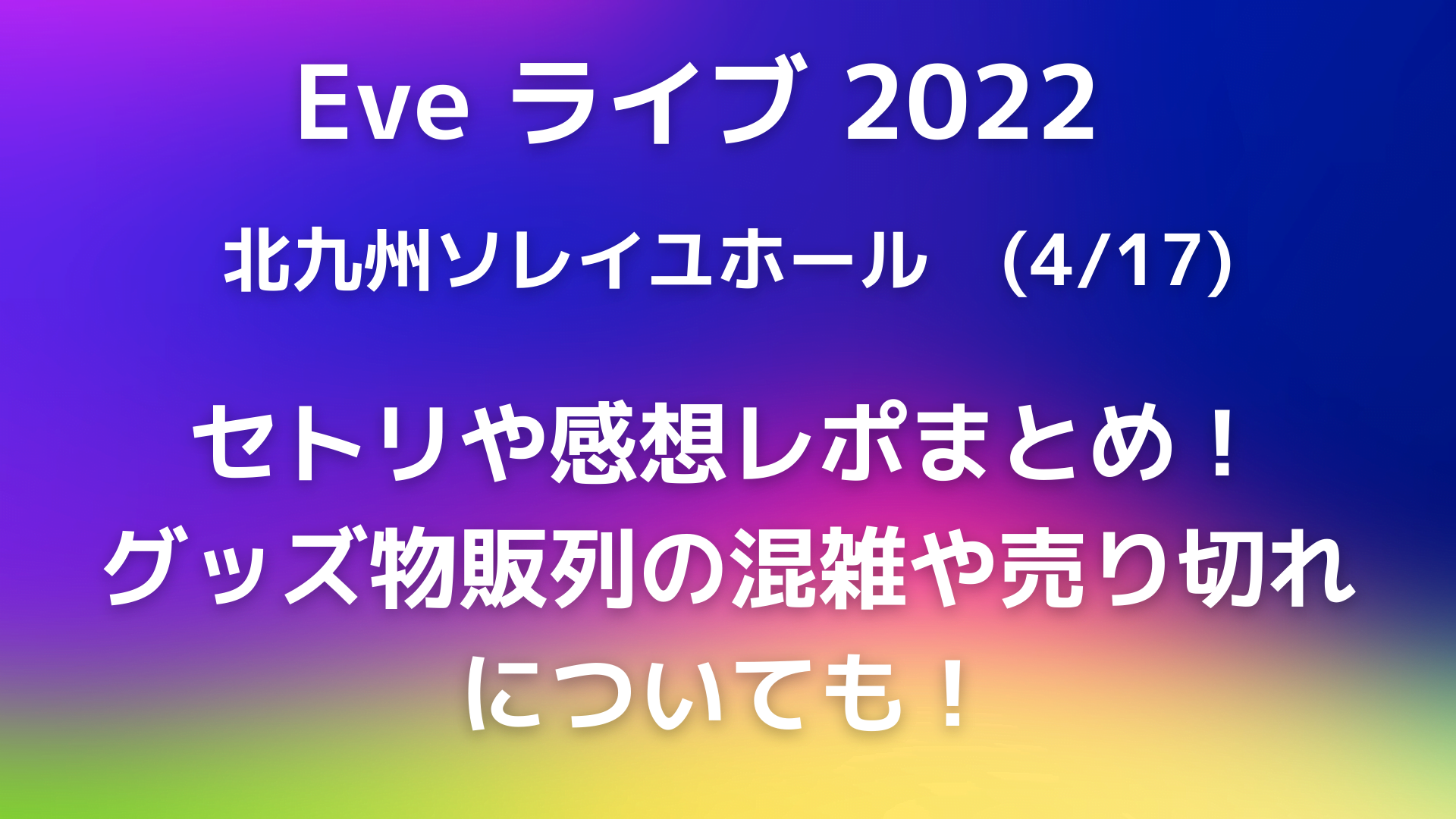 今回は「Eveライブ2022(4/17)福岡のセトリ感想レポ!グッズ列の混雑や売り切れについても!」と題して以下についてまとめています。