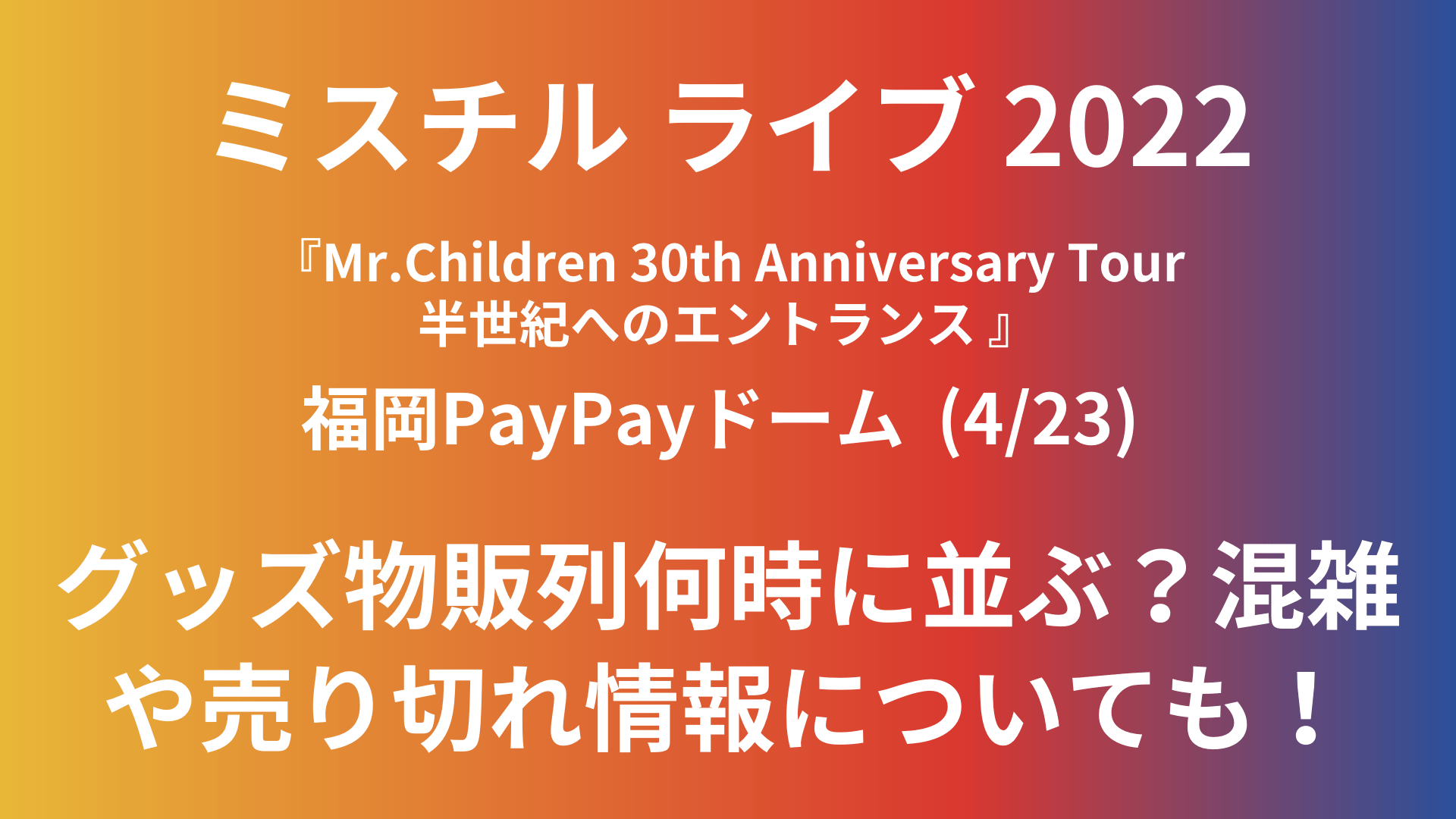 今回は「ミスチルライブ2022(4/23)福岡のグッズ物販列何時に並ぶ?混雑や売り切れ情報についても!」と題して以下についてまとめています。