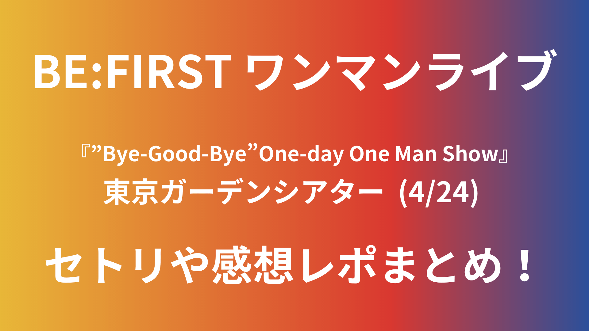 【#BEFIRSTワンマン 4/24昼レポ】