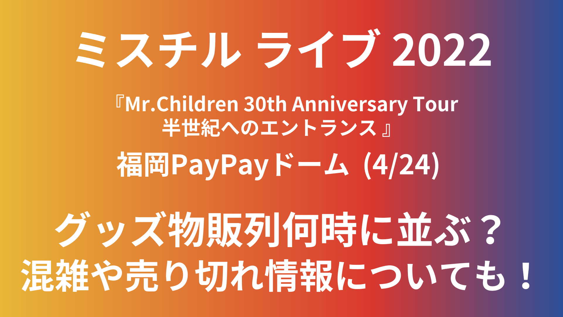 グッズ列が半端ない💦#半世紀へのエントランス #MrChildren pic.twitter.com/vidzxOGOTa— BIG BEAT→4/24 Mr.Children@福岡PayPayドーム (@sas24EX) April 24, 2022