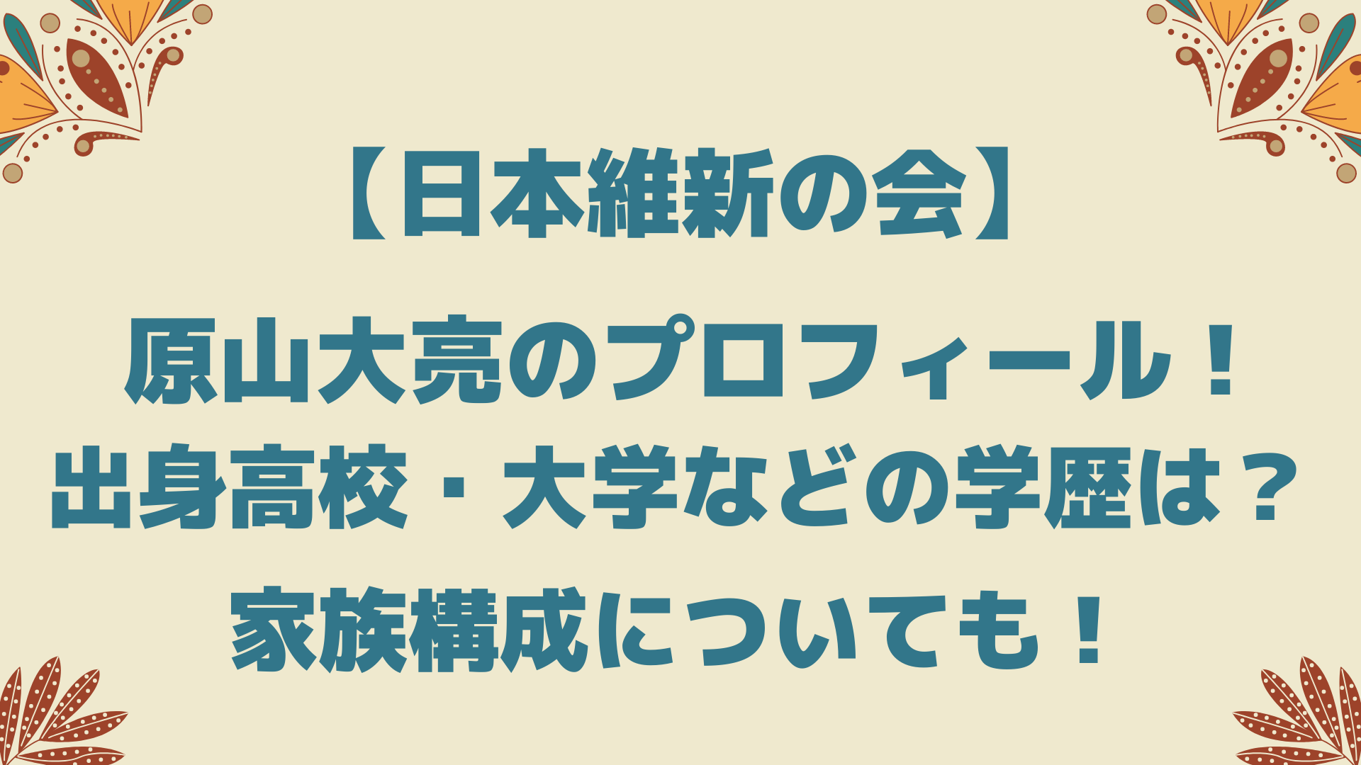 今回は「原山大亮のプロフィール!出身高校・大学などの学歴は?家族構成についても!」と題して以下についてまとめています。
