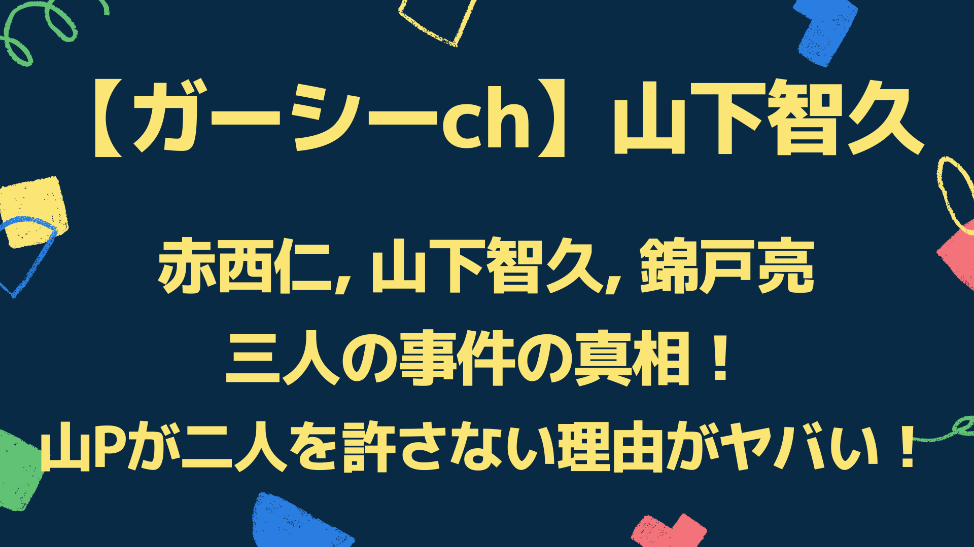 ガーシーチャンネルにて明らかになった赤西仁さん、山下智久さん、錦戸亮さんの三人が絡んだ事件。