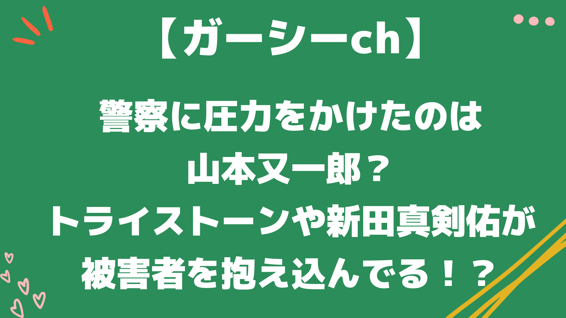 今回は「【ガーシー】警察に圧力かけたのは山本又一郎(又さん)?トライストーンや新田真剣佑との声も!」と題して以下についてまとめています。