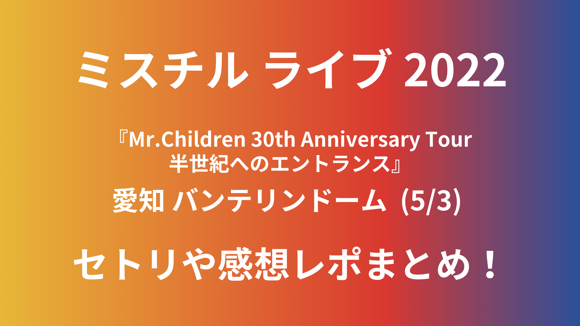 今回は「ミスチルライブ2022(5/3)愛知のセトリや感想レポまとめ!」と題して以下についてまとめています。
