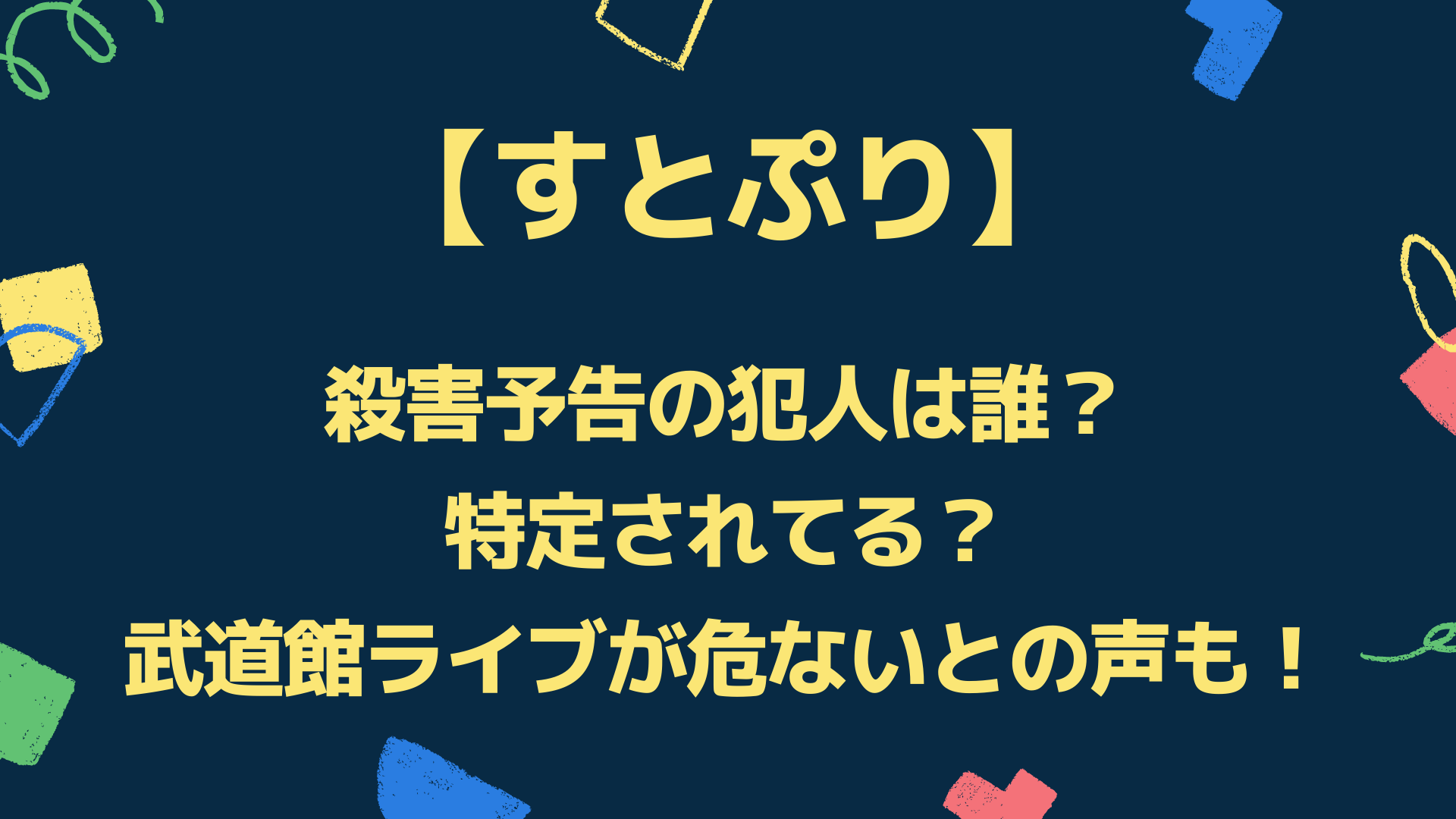 今回は「すとぷりの殺害予告の犯人は誰?特定されてる?武道館ライブが危ないとの声も!」と題して以下についてまとめています。