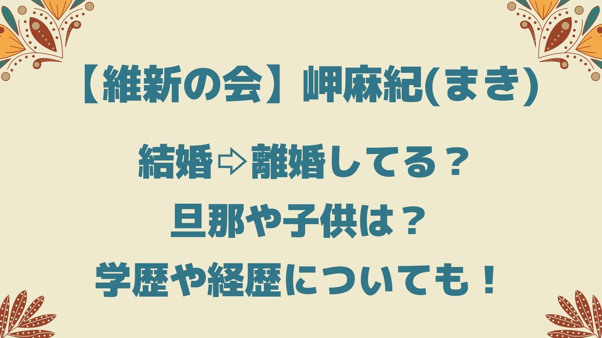 今回は「岬麻紀(まき)は結婚して離婚してる?旦那や子供は?学歴や経歴についても!」と題して以下についてまとめています。