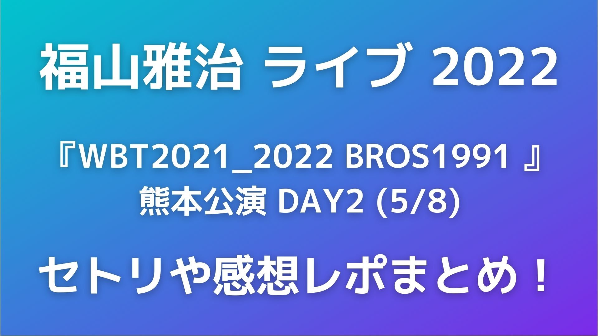 28年前の熊本に本当に感謝していましたね。何度も何度も「ありがとう!」と。#WBT2021_2022 #福山雅治#BROS1991 #グランメッセ熊本 https://t.co/2uRqbBFy1D— みこと (@indigoblue113) May 8, 2022