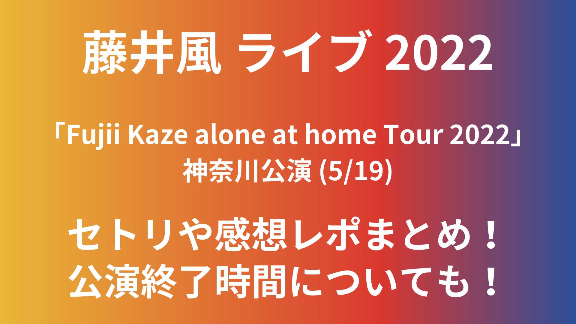 今回は「藤井風ライブ2022(5/19)神奈川のセトリや感想レポ!公演終了時間についても!」と題して以下についてまとめています。