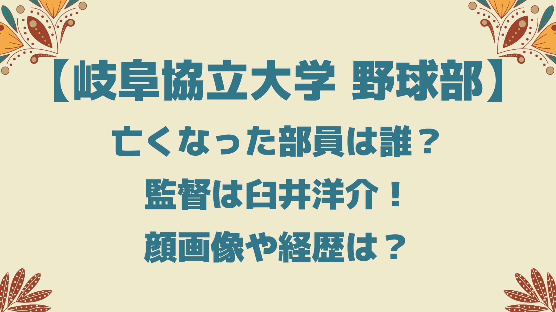 今回は「岐阜協立大学野球部死亡した部員は誰?監督は臼井洋介で顔画像や経歴は?」と題していかについてまとめています。