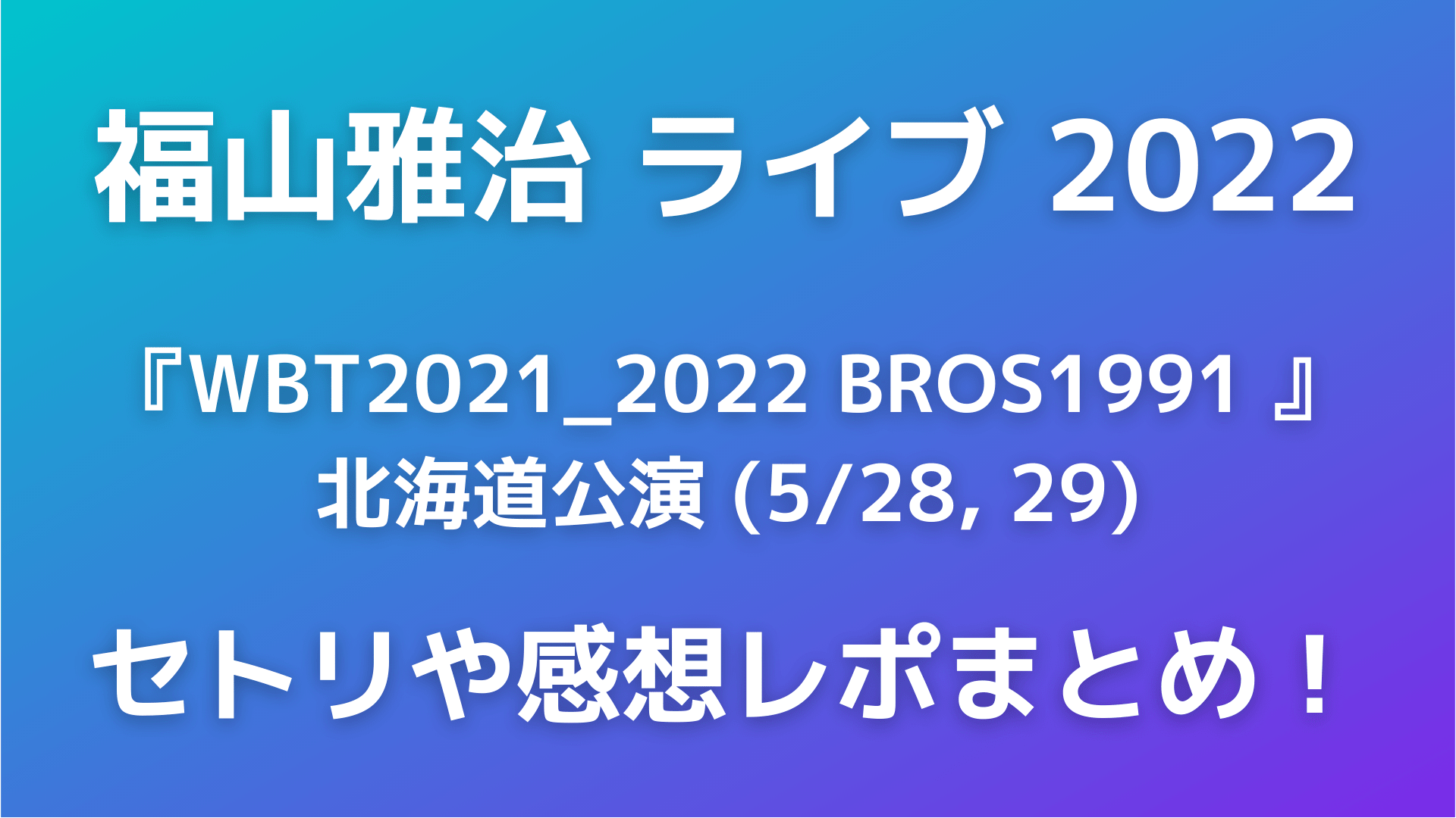 今日参戦する皆さまよろしくお願いします😊#BROS1991 #WBS2021_2022 #福山雅治 #真駒内— takoko (@takomasha) May 28, 2022