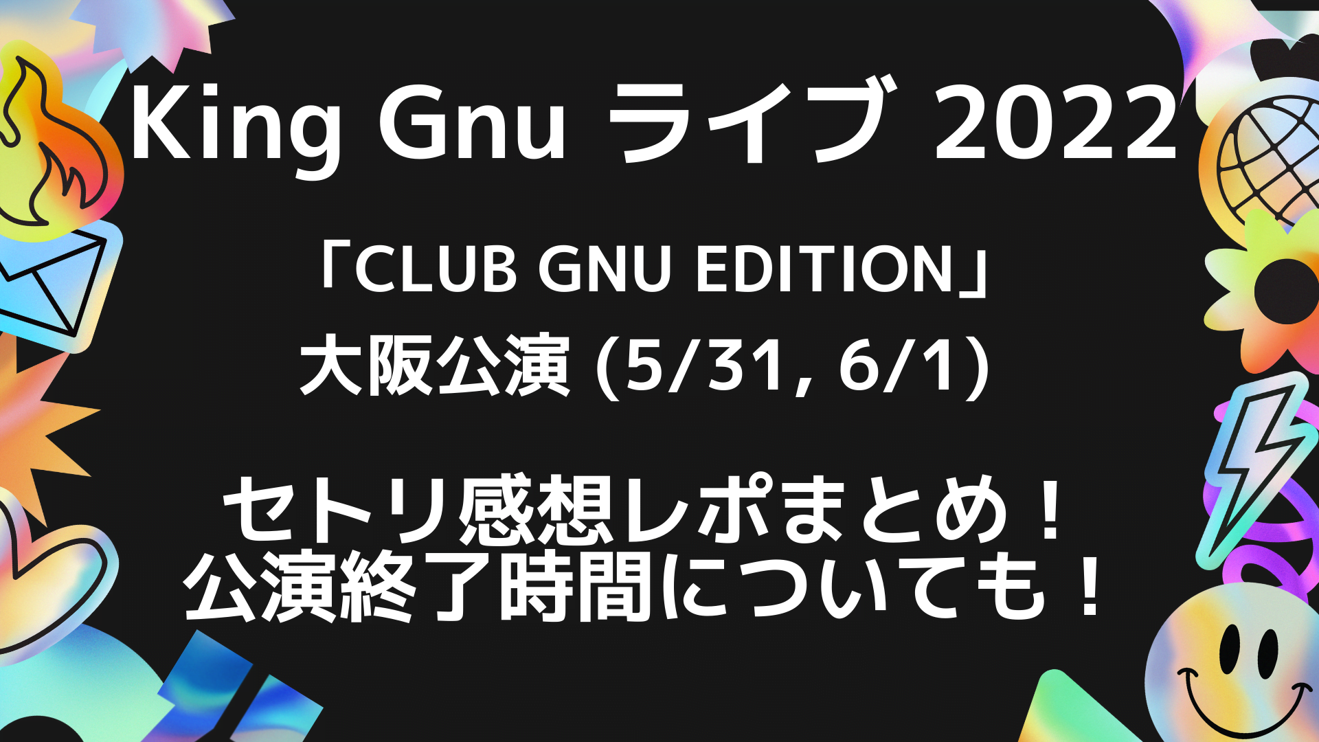 また、King Gnuライブ2022大阪の公演終了時間は「」でした。