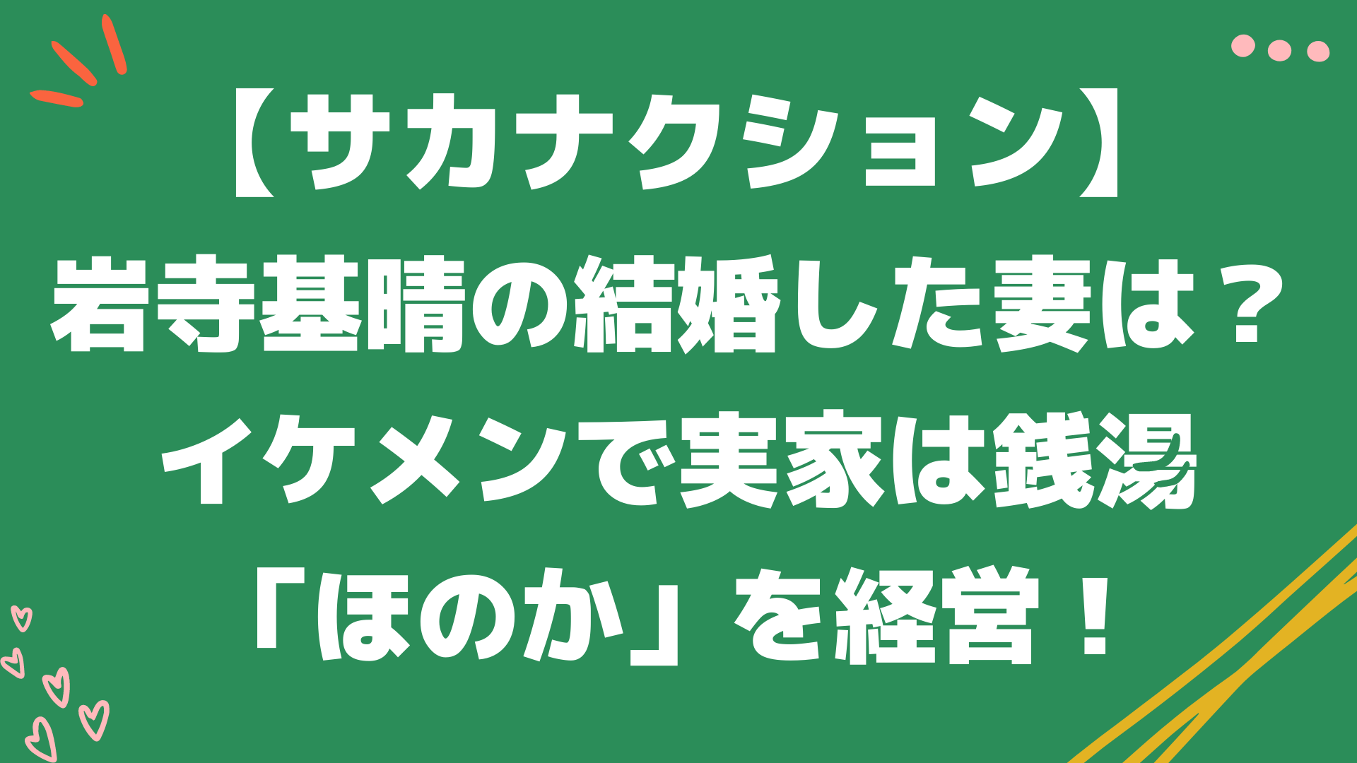 今回は「岩寺基晴の結婚した妻は?イケメンで実家は銭湯「ほのか」を経営!」と題して以下についてまとめています。