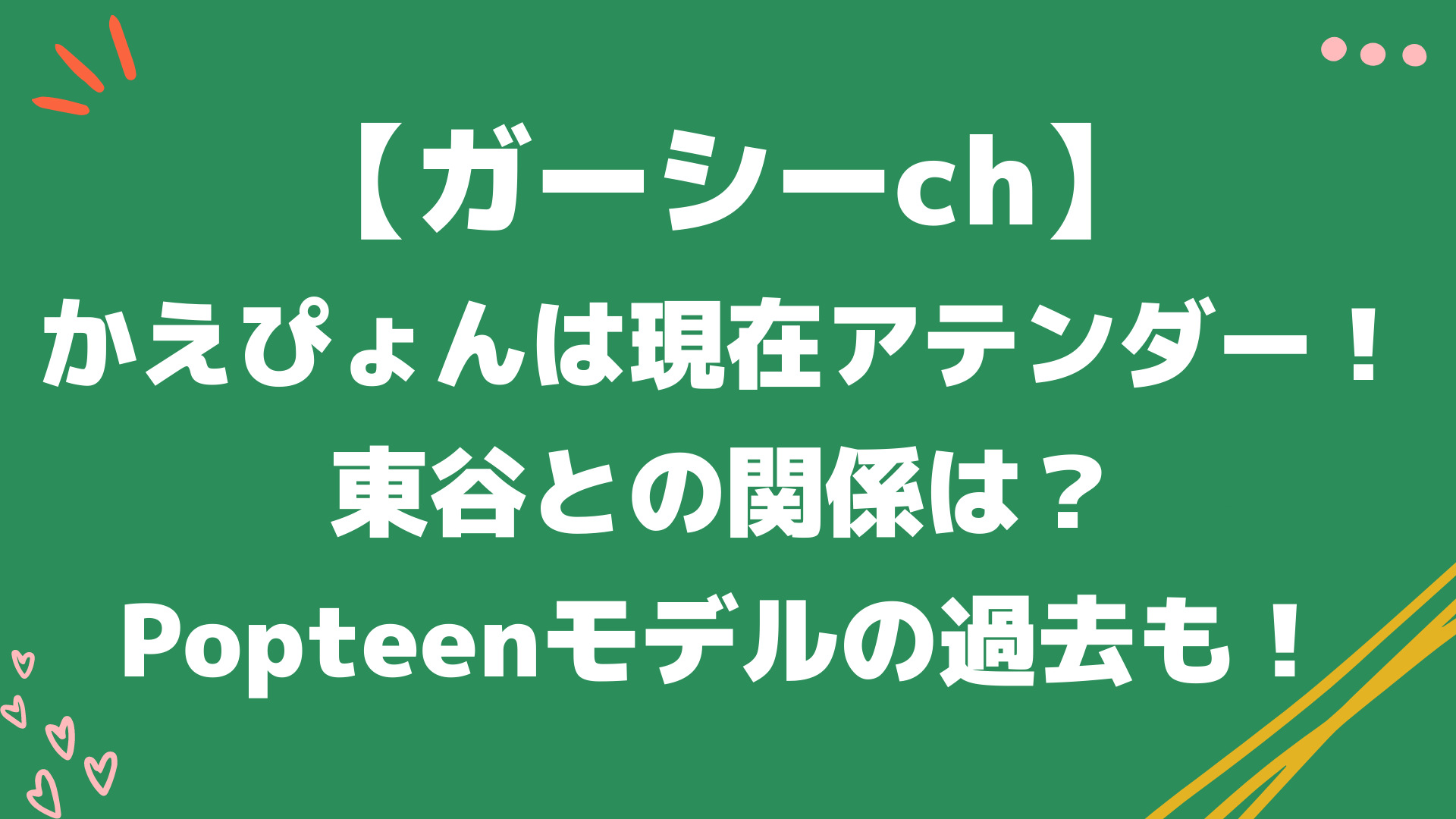 今回は「【ガーシー】かえぴょんは現在アテンダーで東谷との関係は?Popteenモデルの過去も!」と題して以下についてまとめています。