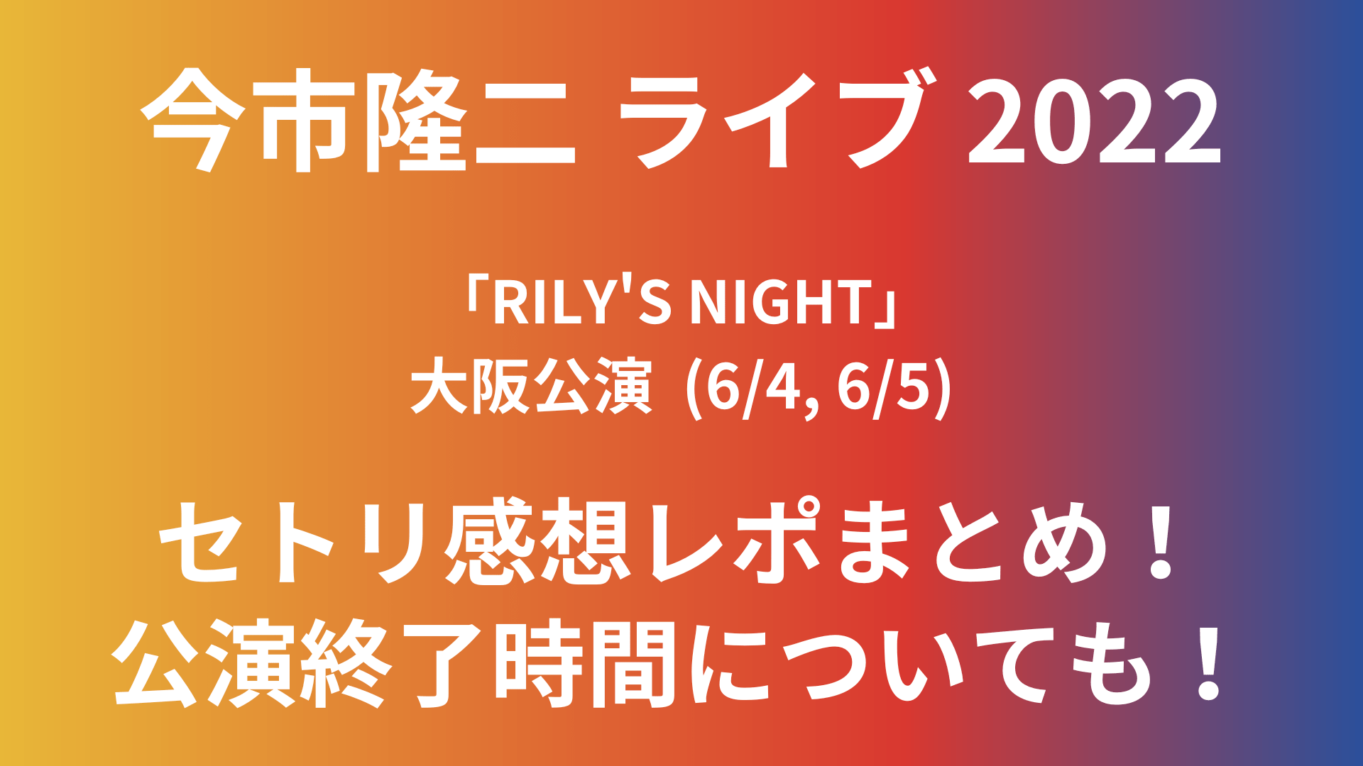 今回は「今市隆二ライブ2022大阪のセトリ感想レポ!公演終了時間についても!(6/4~6/5)」と題して以下についてまとめています。