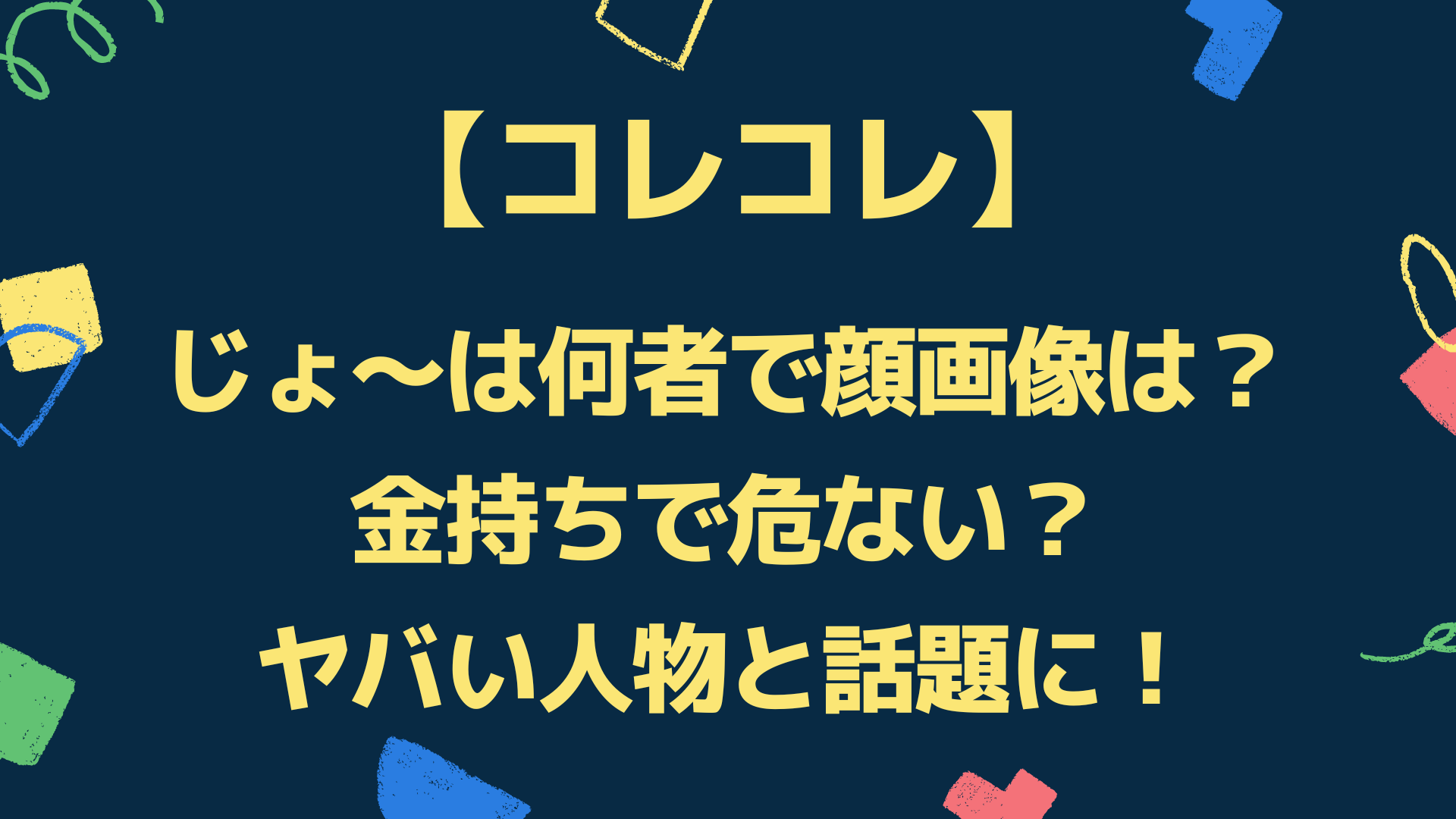今回は「【コレコレ】じょ〜は何者で顔画像は?金持ちで危なくてヤバい人物と話題に!」と題して以下についてまとめています。