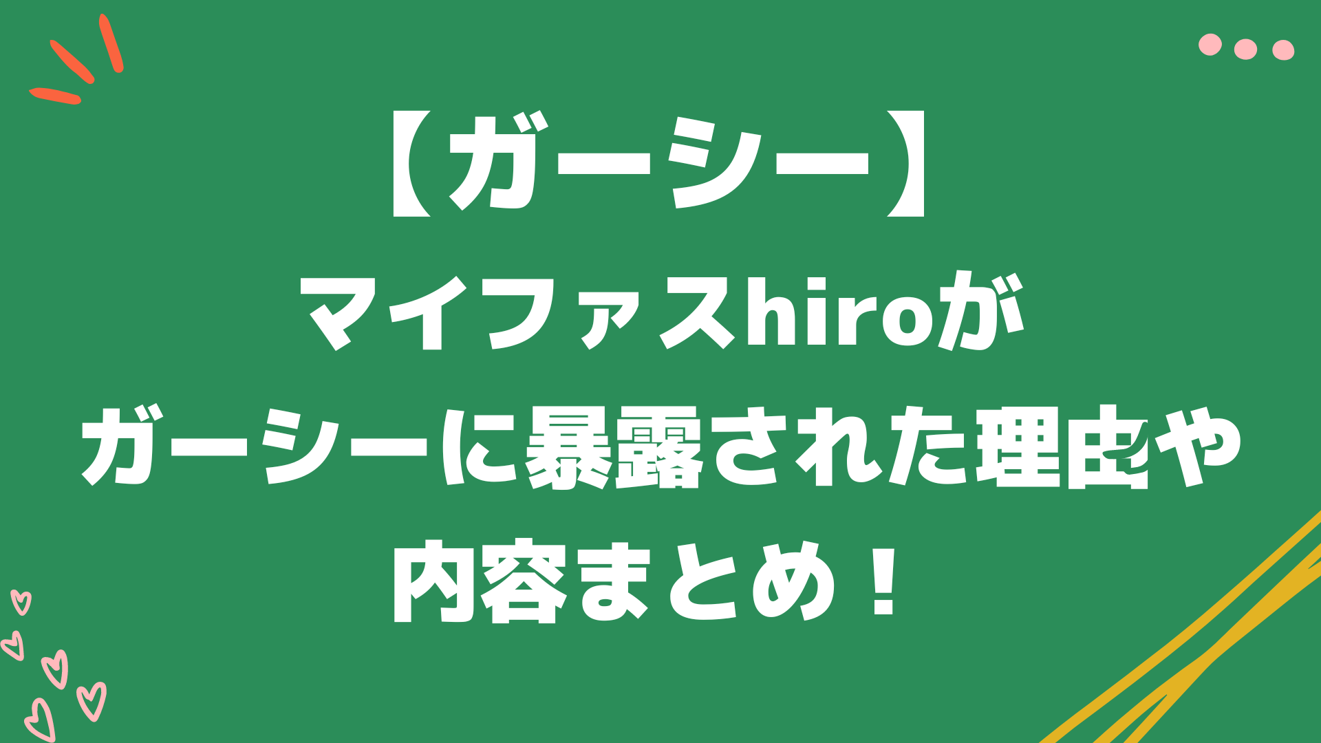 今回は「マイファスhiroがガーシー暴露された理由や内容まとめ!」と題して以下についてまとめています。