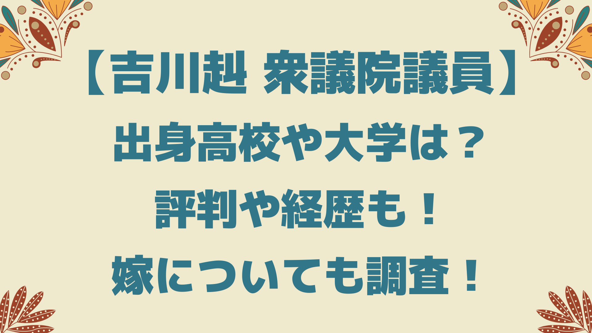 今回は「吉川赳の出身高校や大学は?評判や経歴も!嫁についても調査!」と題して以下についてまとめています。