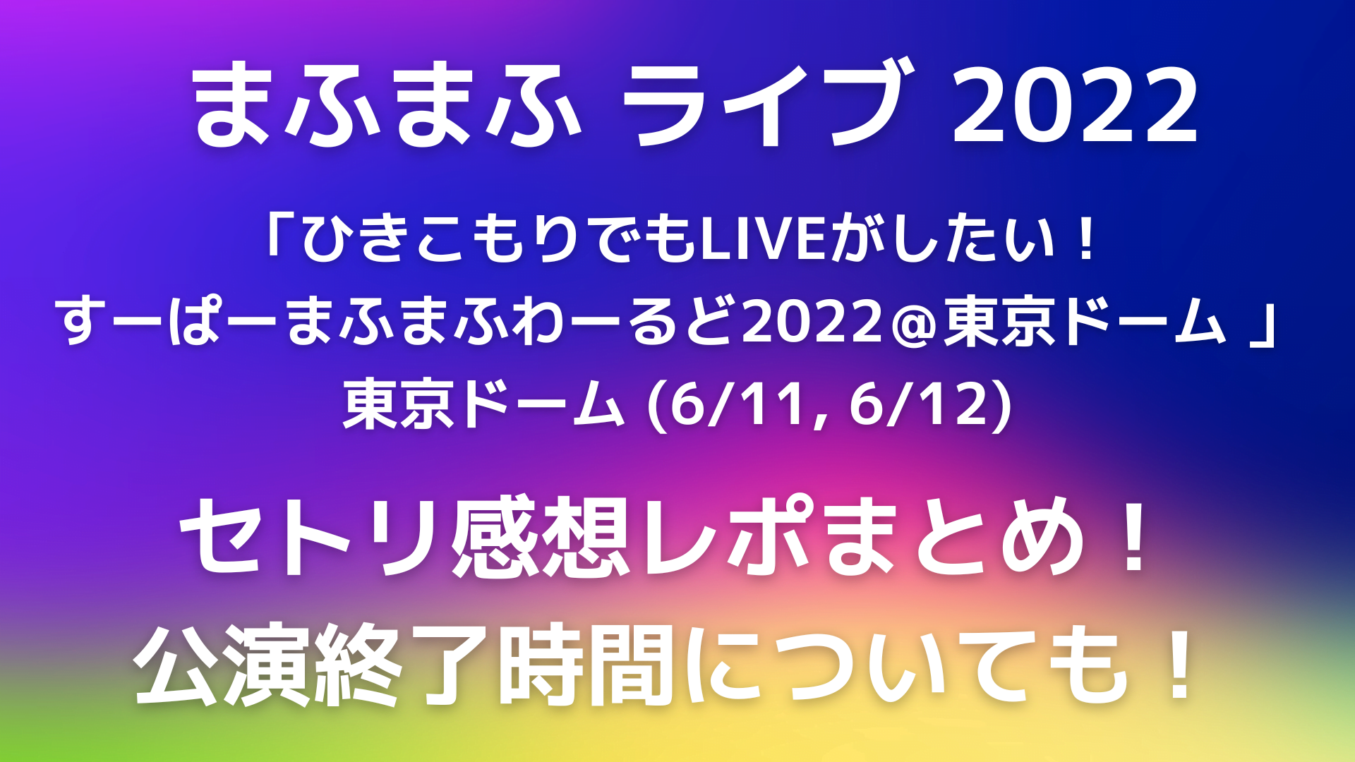 今回は「まふまふライブ2022東京ドームのセトリ感想レポ!公演終了時間についても!(6/11~6/12)」と題して、以下についてまとめています。