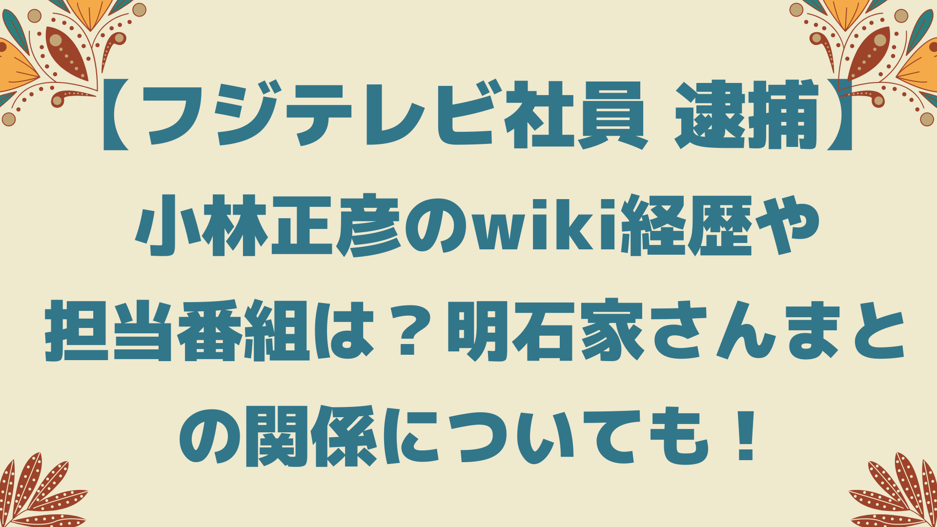 今回は「小林正彦(フジテレビ)のwiki経歴や担当番組は?明石家さんまとの関係についても!」と題して以下についてまとめています。