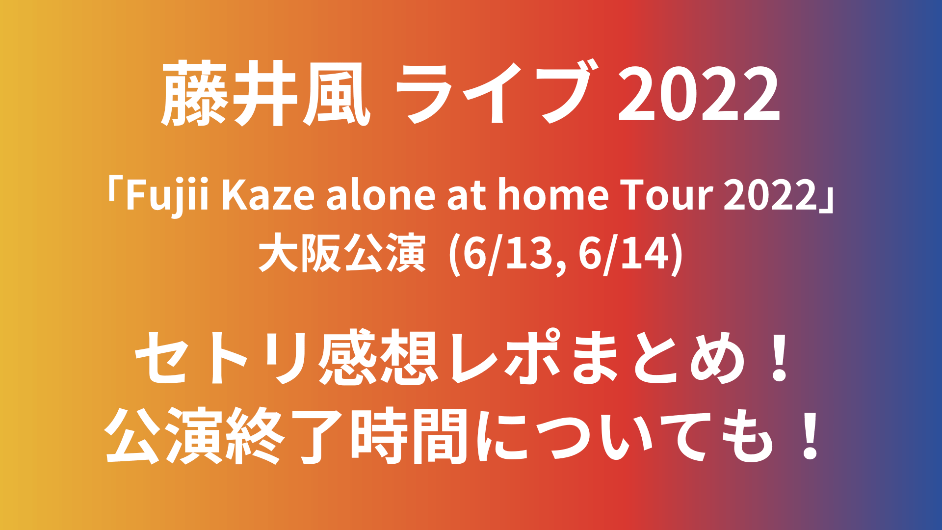 今回は「藤井風ライブ2022大阪のセトリや感想レポ!公演終了時間についても!」と題して以下についてまとめています。