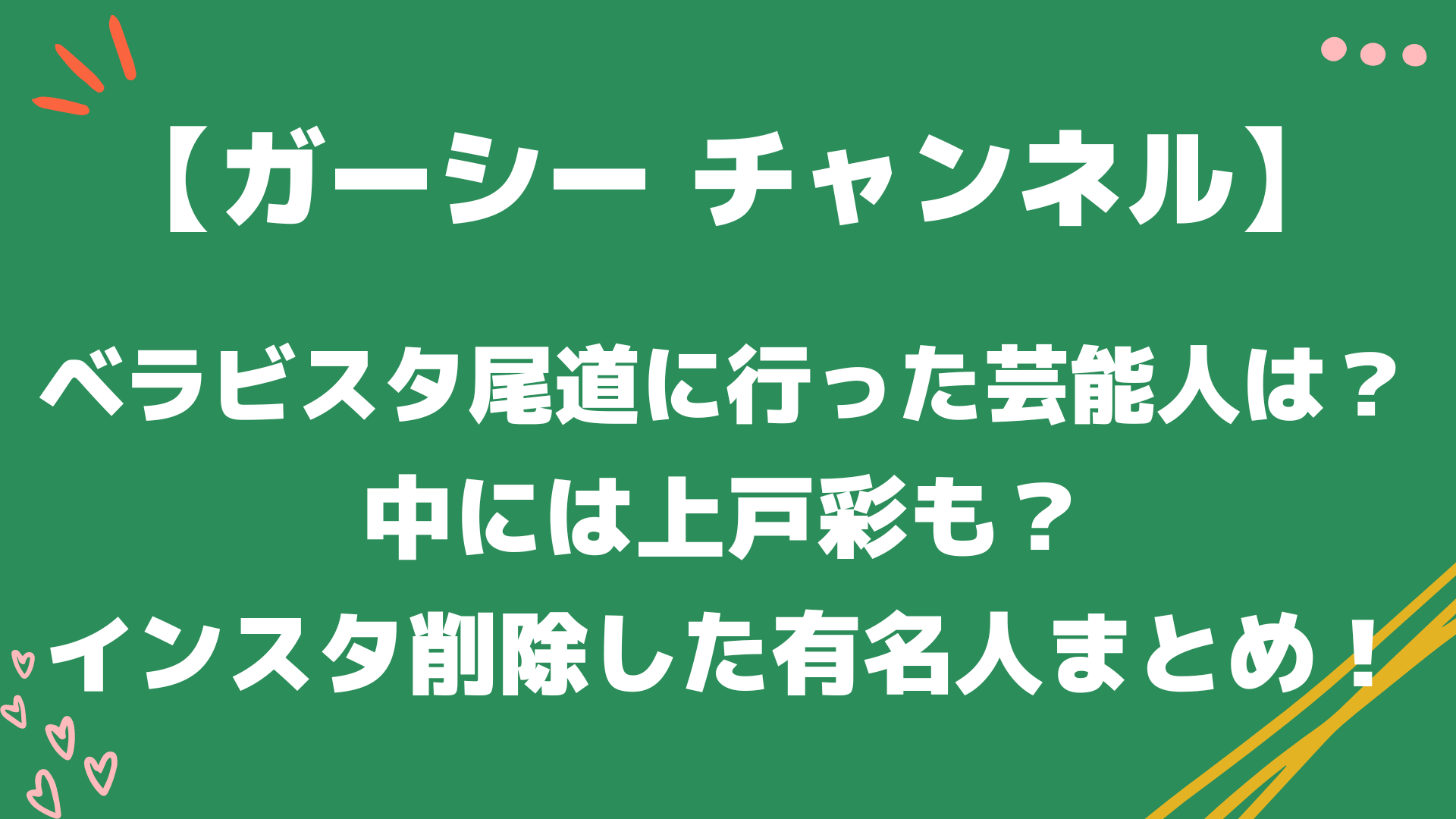 今回は「ベラビスタ尾道に行った芸能人には上戸彩も!インスタ削除した有名人についてまとめてみた!」と題していかについてまとめています。