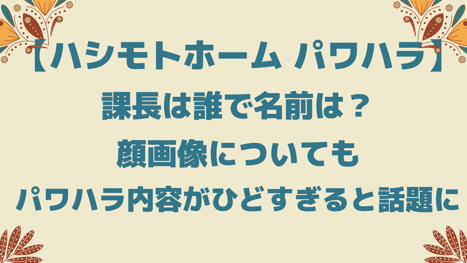 今回は「ハシモトホームパワハラ課長は誰で名前は?顔画像や内容がひどすぎると話題に」と題して以下についてまとめています。