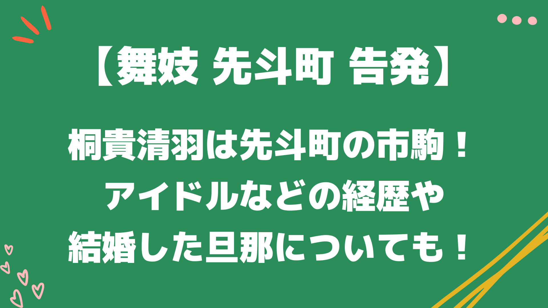 今回は「桐貴清羽は先斗町の市駒!アイドルなどの経歴や結婚した旦那についても!」と題して以下についてまとめています。