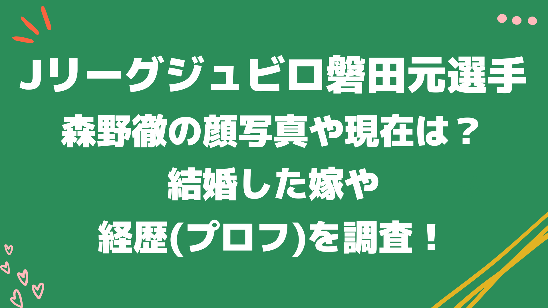 今回は「森野徹の顔写真や現在は?結婚した嫁や経歴(プロフ)を調査!」と題して以下についてまとめています。