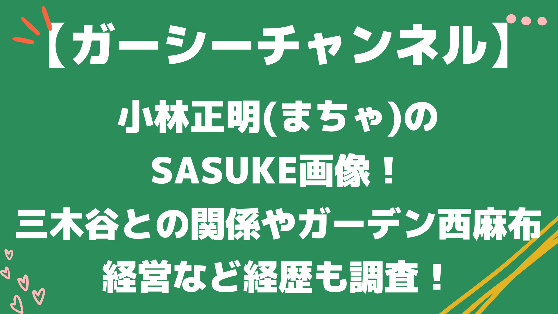 今回は「【ガーシー】小林正明(まちゃ)のSASUKE画像!三木谷との関係やガーデン西麻布経営など経歴も調査!」と題して以下についてまとめています。